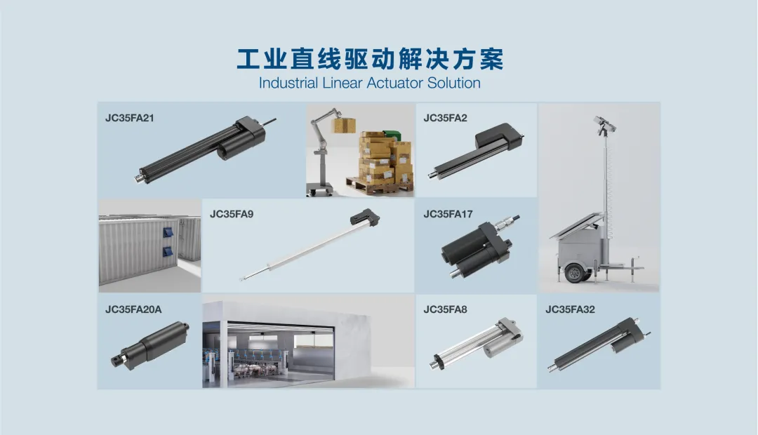 针对工业自动化、农业机械、储能系统等复杂应用环境,工业事业中心带来的多款电动推杆,提供了可靠的直线运动解决方案。现场重点展示的四款新品,直指市场对更高效率与耐久性的追求。