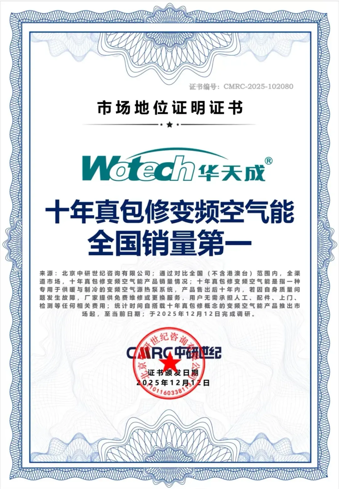 十年真包修变频空气能,华天成销量全国第一!中研世纪权威认证!