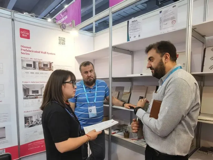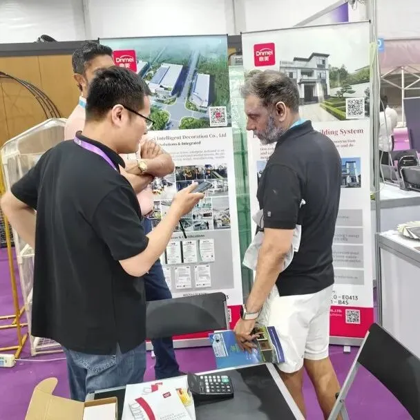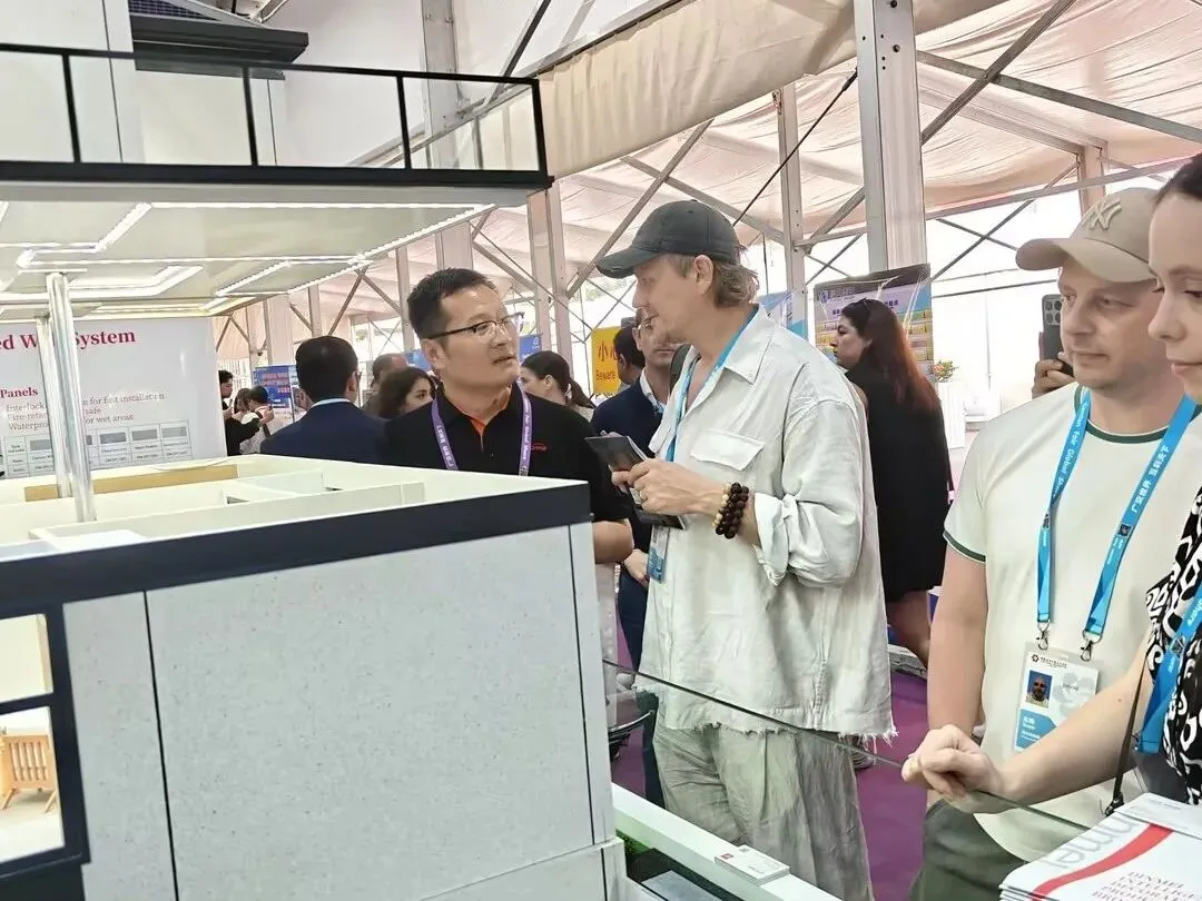 依托工业化生产与装配式工艺,鼎美产品兼具绿色环保、即装即住、高效施工等优势,精准适配家装、公装、旧房改造等多元场景,为全球客商提供了直观、可落地的装配式装修选材与应用参考,现场咨询洽谈热度持续高涨。