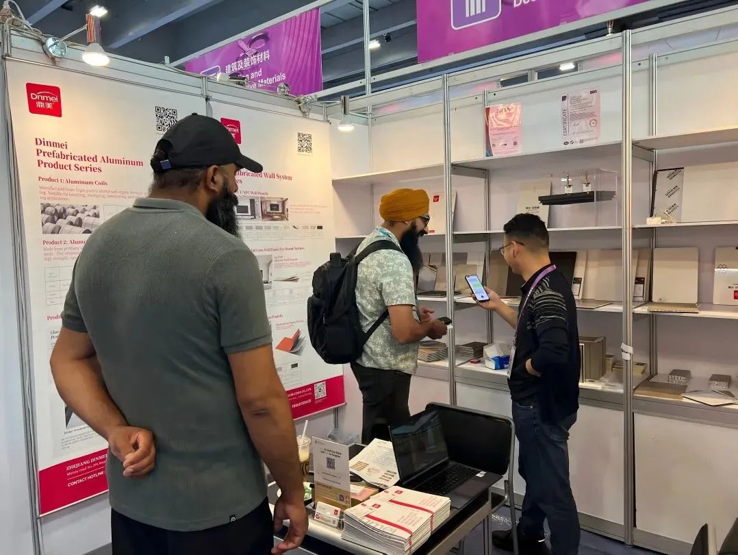鼎美室内展馆(13.1 馆 B45)聚焦装配式装修核心产品:鼎美铝材系列(铝卷、铝蜂窝大板、铝扣板)、装配式墙面(铝岩板、实心墙板、石晶墙板)、装配式地板(石晶地板)等全品类产品,从基材到成品、从顶墙到地面完整覆盖装配式装修核心环节。