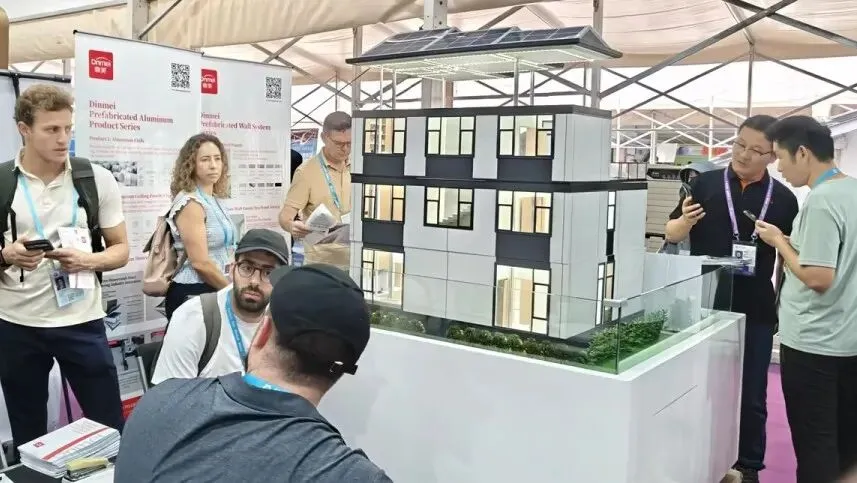 这一创新展示形式,不仅让全球客商清晰感知建装一体化的落地价值,更凸显鼎美在装配式领域从材料供应向系统解决方案、一体化建造服务升级的战略布局。