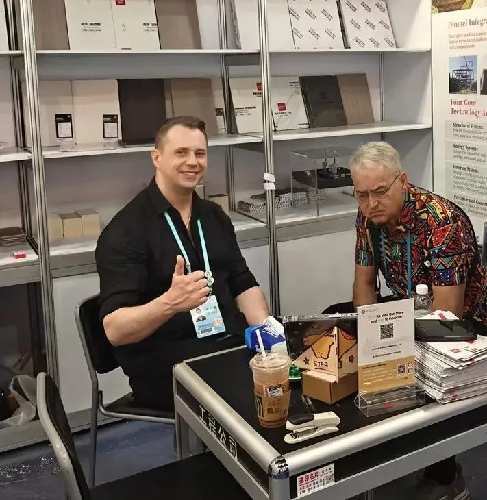 展会现场,鼎美与全球客商深度对接、高效洽谈,围绕装配式产品技术创新、场景化应用落地及多元化海外合作模式展开充分交流,凭借过硬的产品实力与成熟的解决方案,赢得了海内外客商的广泛认可与高度赞誉。