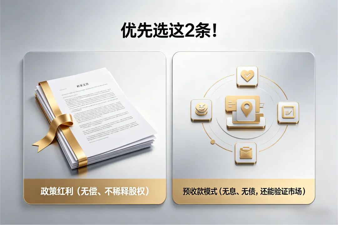 2. 预收款模式(无息、无债,还能验证市场)。