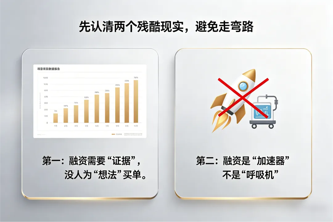 银行、天使、熟人,不会投一个纯粹的“想法”。哪怕只有1个付费客户、1张意向订单,都是你融资的筹码——先跑通小闭环,再谈融资。