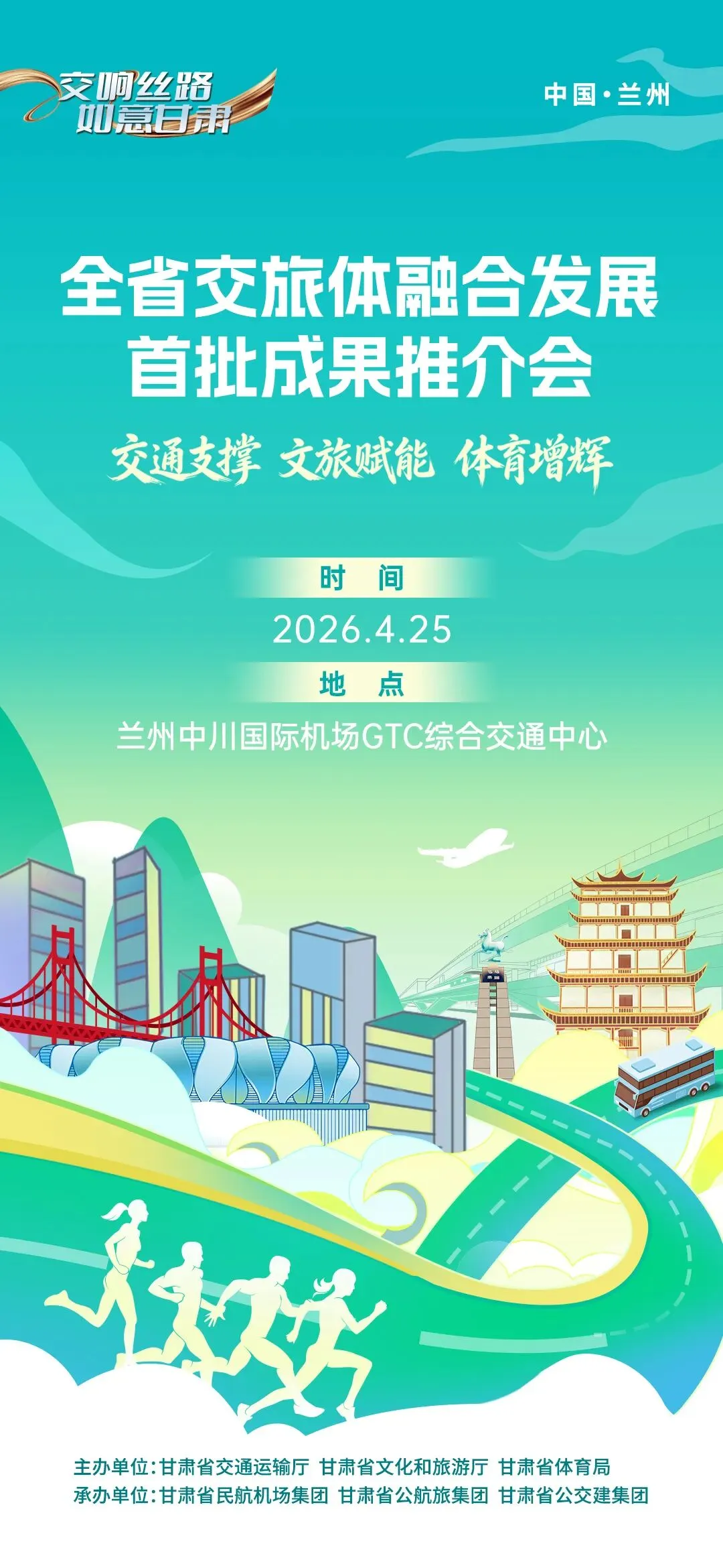 交通支撑、文旅赋能、体育增辉,4月25日,全省交旅体融合发展首批成果推介会在兰州中川国际机场GTC综合交通中心举行,敬请关注。