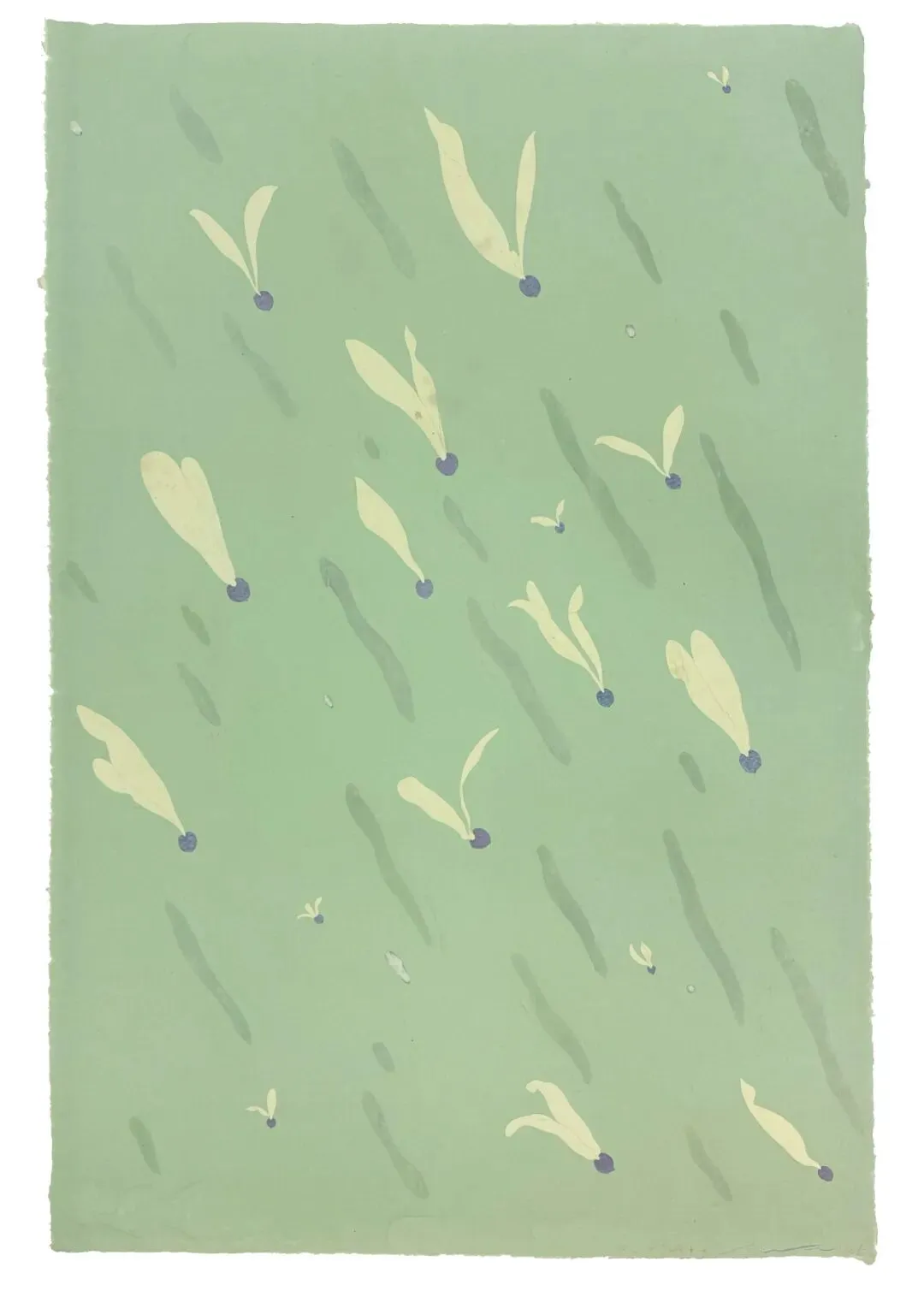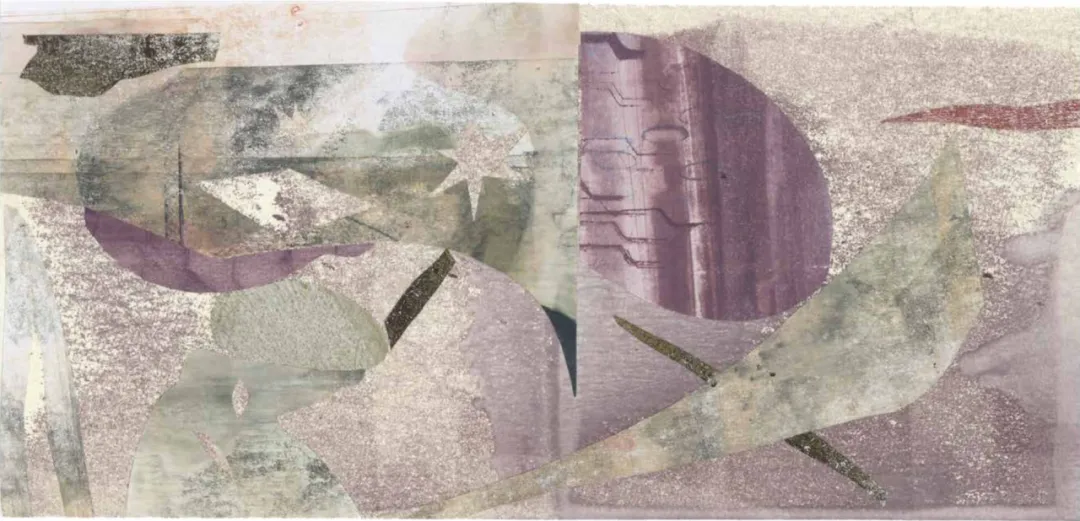 A:对,印版画剩下的颜料,我没洗掉,而是滚到纸上,既方便又能产生新的创作材料,用最好的纸创作时要思前想后才能落笔,创作容易拘谨,这些纸是打印纸,创作时更放松,反而出来的效果更好。