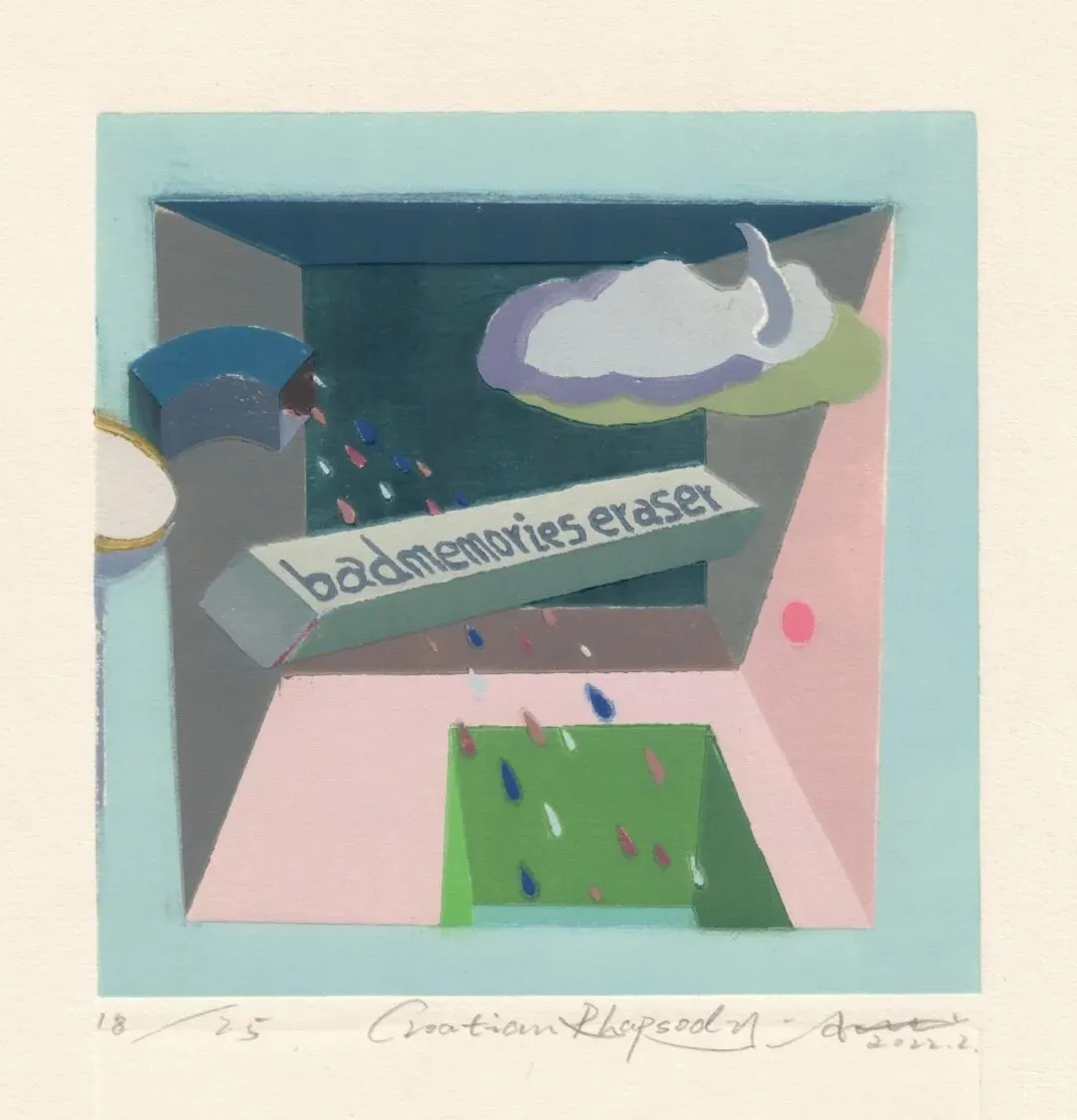 A:没错,边界本身就是模糊地带,地理边界、媒介边界都是,我的这幅版画就是想表达这个,看着是两块板,其实是一块裁切的,分别上墨再拼在一起印。
