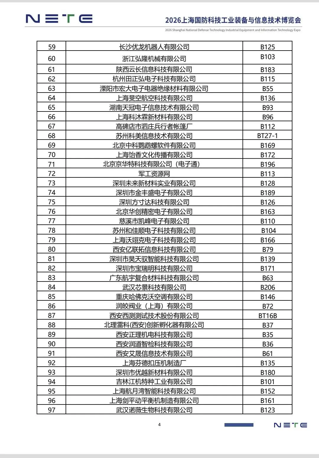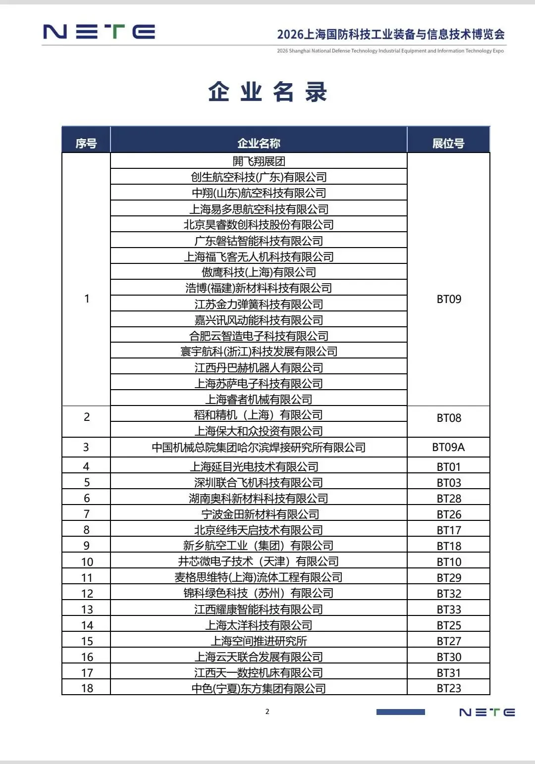 第二届上海国防科技工业装备与信息技术博览会参会企业名录