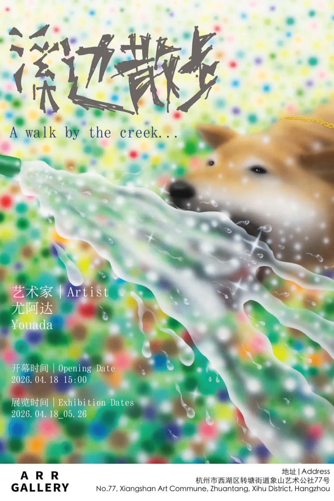 本次ARR Gallery于B厅带来艺术家¥ouada的个展——溪边散步。¥ouada的创作是一场关于文化的即兴采样,滑走的短视频、看过的漫画、随身的物品,统统变成了画布上的视觉样本,再经由艺术家独特的个人风格进行重组,为那些我们习以为常的流行符号与亚文化碎片从视觉上赋予新的样貌。这种看似玩世不恭的拼贴,实则是一种日常散步式的田野调查——以某种自我的、诙谐的步调持续进行着。尤阿达的作品并不是对于现实世界的再现,而是用既定的文化碎片再制造一层新的通俗表达。散步般的姿态,是在已被既定的文化地图中走出自己的路径,而作品的意义也恰恰存在于边走边看、边拆边拼的过程本身。