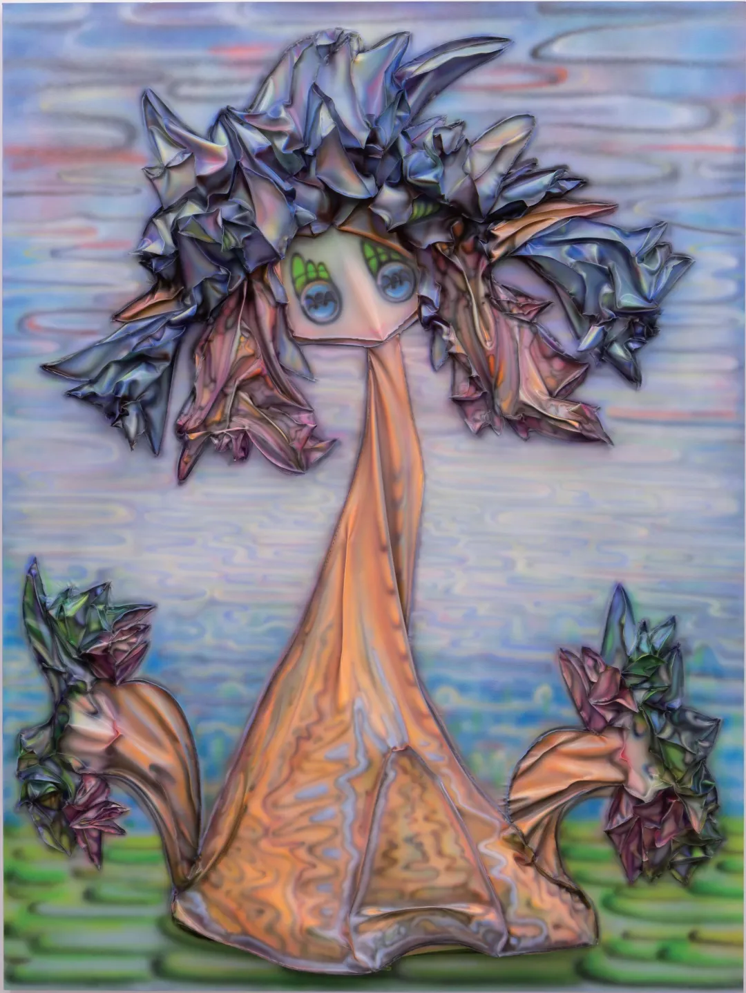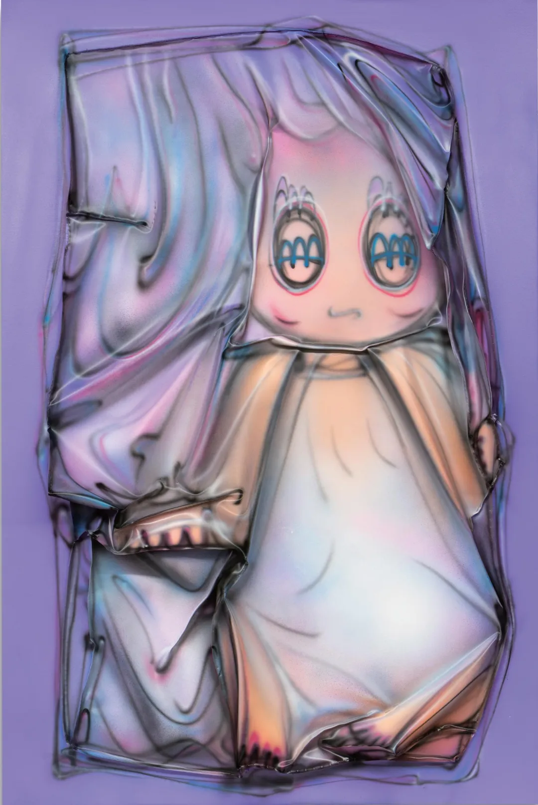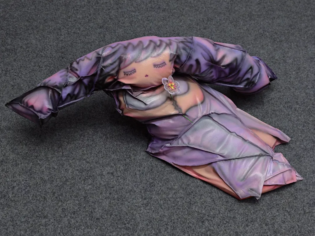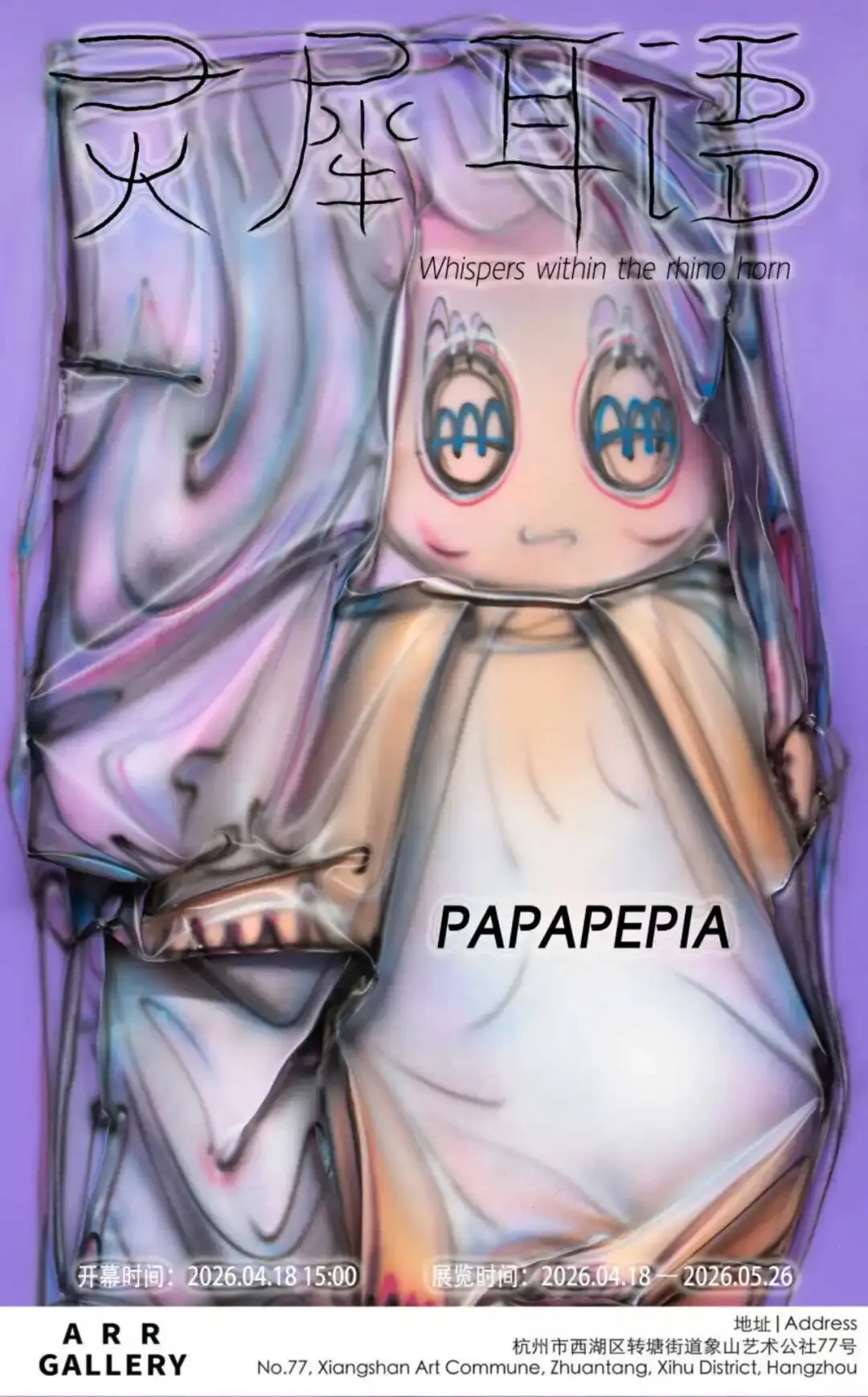 作为杭州最新⼀代活跃的艺术家,PAPAPEPIA使⽤PVC作为材料创作雕塑和绘画。PAPAPEPIA的艺术创作基于探索原始、单语和视听之间的神秘联系。他以声像感知复合体“A”(发⾳为ah)序列为创作母体,试图⽤⾮线性逻辑对其进⾏重新定义。“PVC”是他的重要创作材料,因为这种材料看起来像⽣物的“⽪肤”,他认为PVC材料不仅与信息的透明度相对应,⽽且当弯曲折叠时,不同的光线和观看⾓度会在作品表⾯呈现多种A的形态,就好像他创造的⽣物在喃喃⾃语。