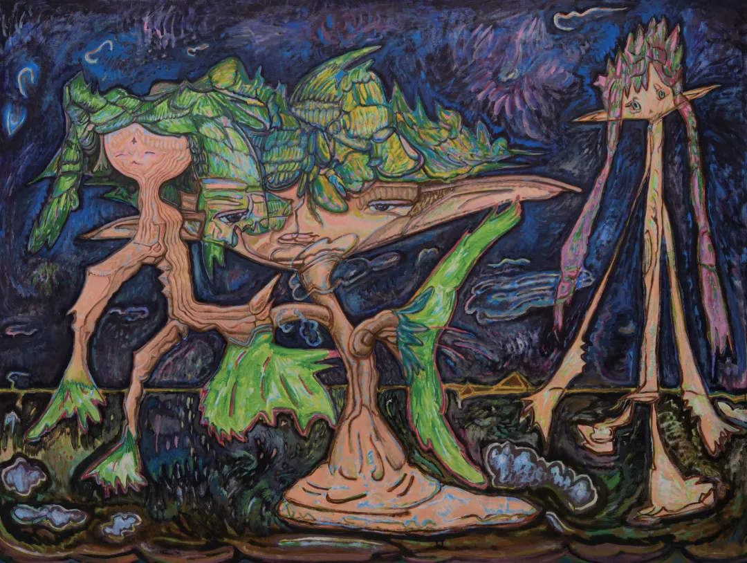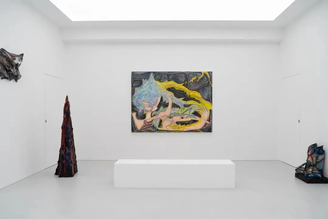 这种将日常观察、内在联想与生命感知悉数拆解、重组的创作方式,就像将犀角中的白线埋入作品之中,画面中的某个尖角形态,某道穿过作品透明材质的线形光影,就像一道忽然的耳语,一条灵感的游丝将观者与作品连接:此时作品中的生命体仿佛穿越了维度的边界,以一种天真而笃定的姿态与观众对视,并借由这种感知共振,唤醒那些原始而真挚的灵光。