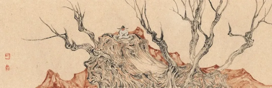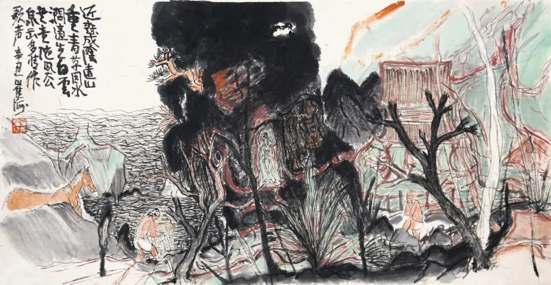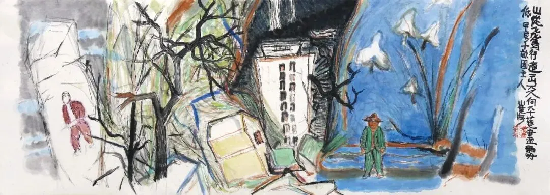 崔海《山从飞鸟行边出》32x90cm 国画 2023年