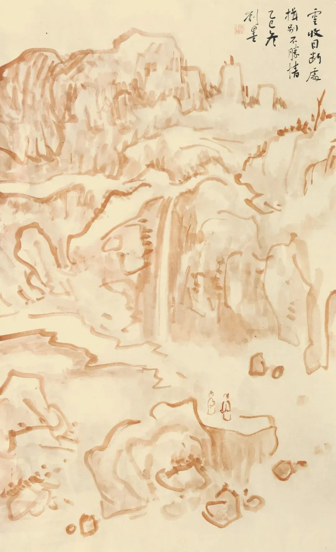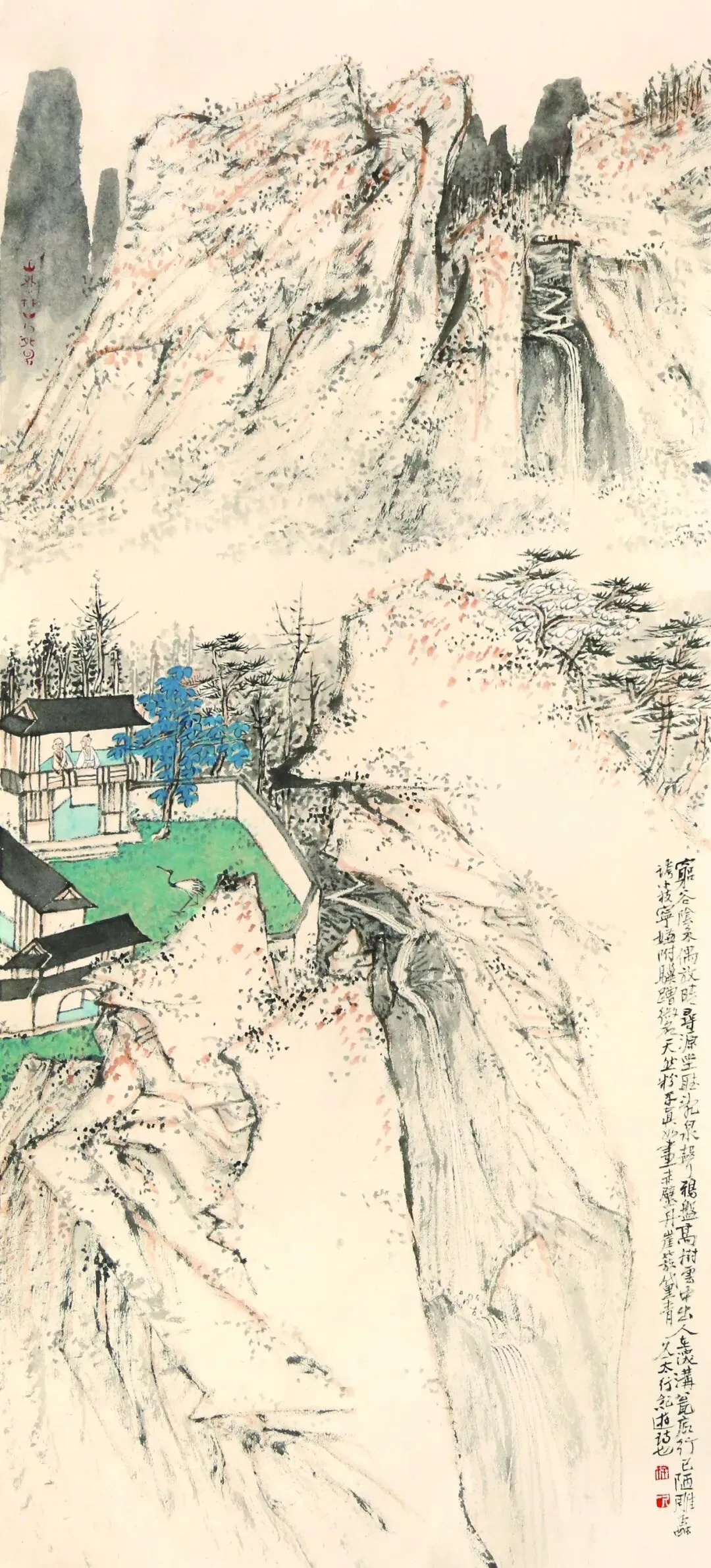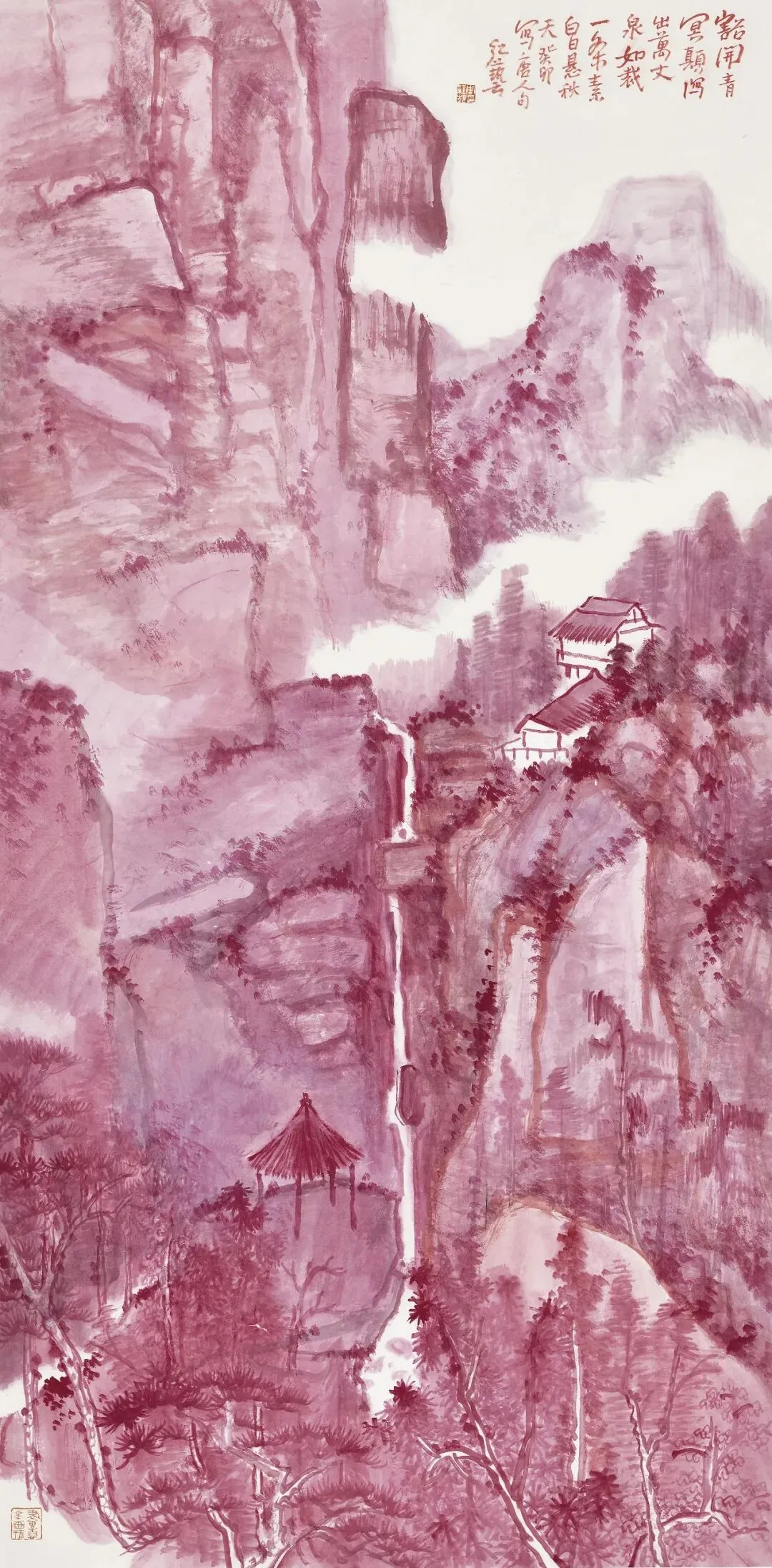 周红艺《山中瀑布》136x68cm 纸本设色 2023年