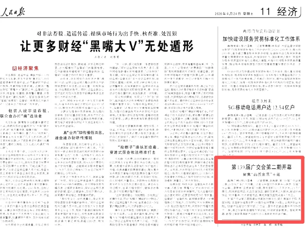 4月24日,人民日报刊发《第139届广交会第二期开幕 聚焦“品质家居”主题》,内容如下: