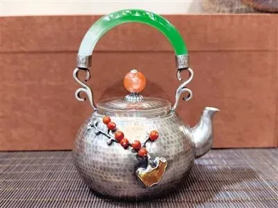 杨碧艳特别提到,品牌还提供“旧饰改造”定制服务,“许多客户家中有闲置或破损的翡翠手镯、戒指等首饰,我们可以将这些承载个人情感的老物件,通过二次创作镶嵌到银壶或茶器上,让记忆在日常使用中重获新生。”