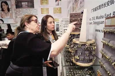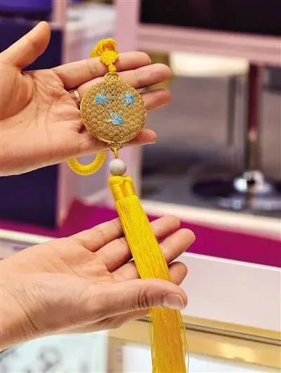在中华老字号福人楼展位上,“齐鲁六韵”文化IP系列及经典花丝工艺以珠宝为载体传递东方文化之美。公司发展加盟部经理张静静介绍,广交会二期开展首日,展位吸引了来自欧洲、东南亚、中东等地区的众多采购商驻足洽谈。采购商纷纷赞叹中国传统工艺,多款非遗工艺首饰还当场达成采购意向。