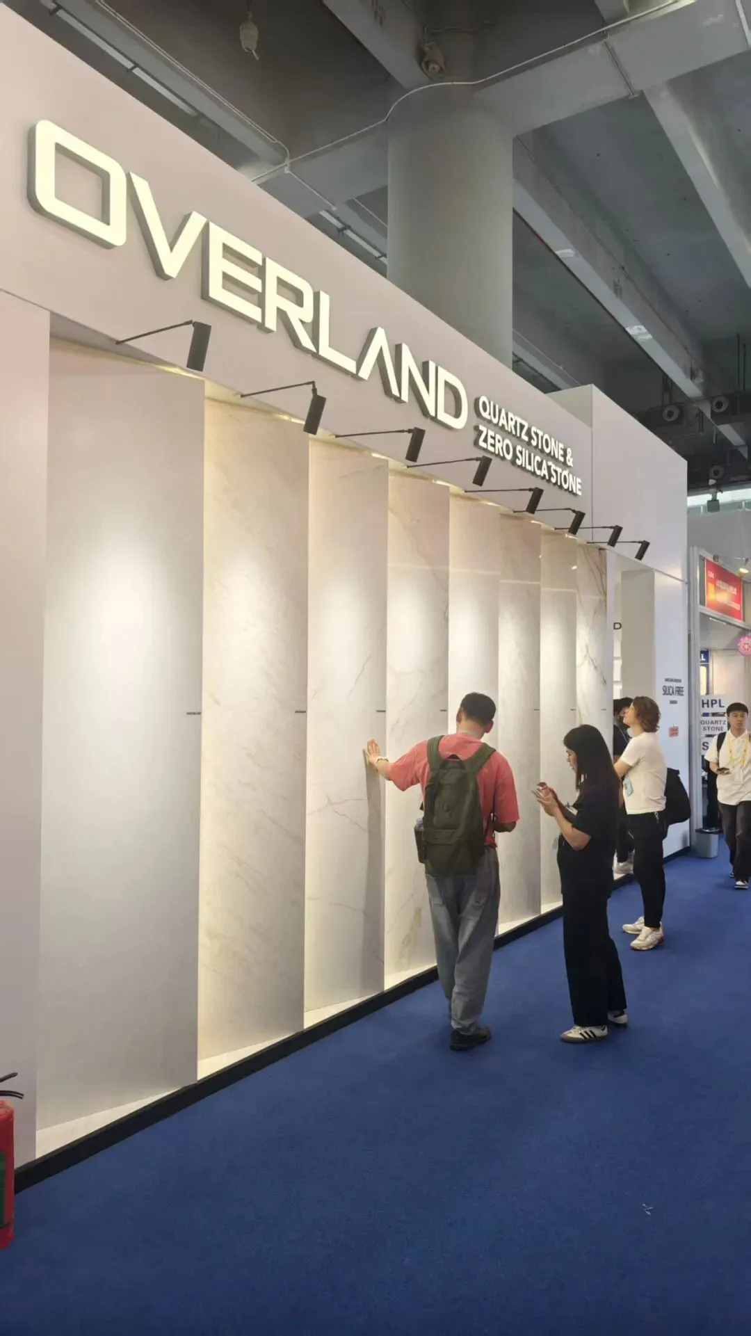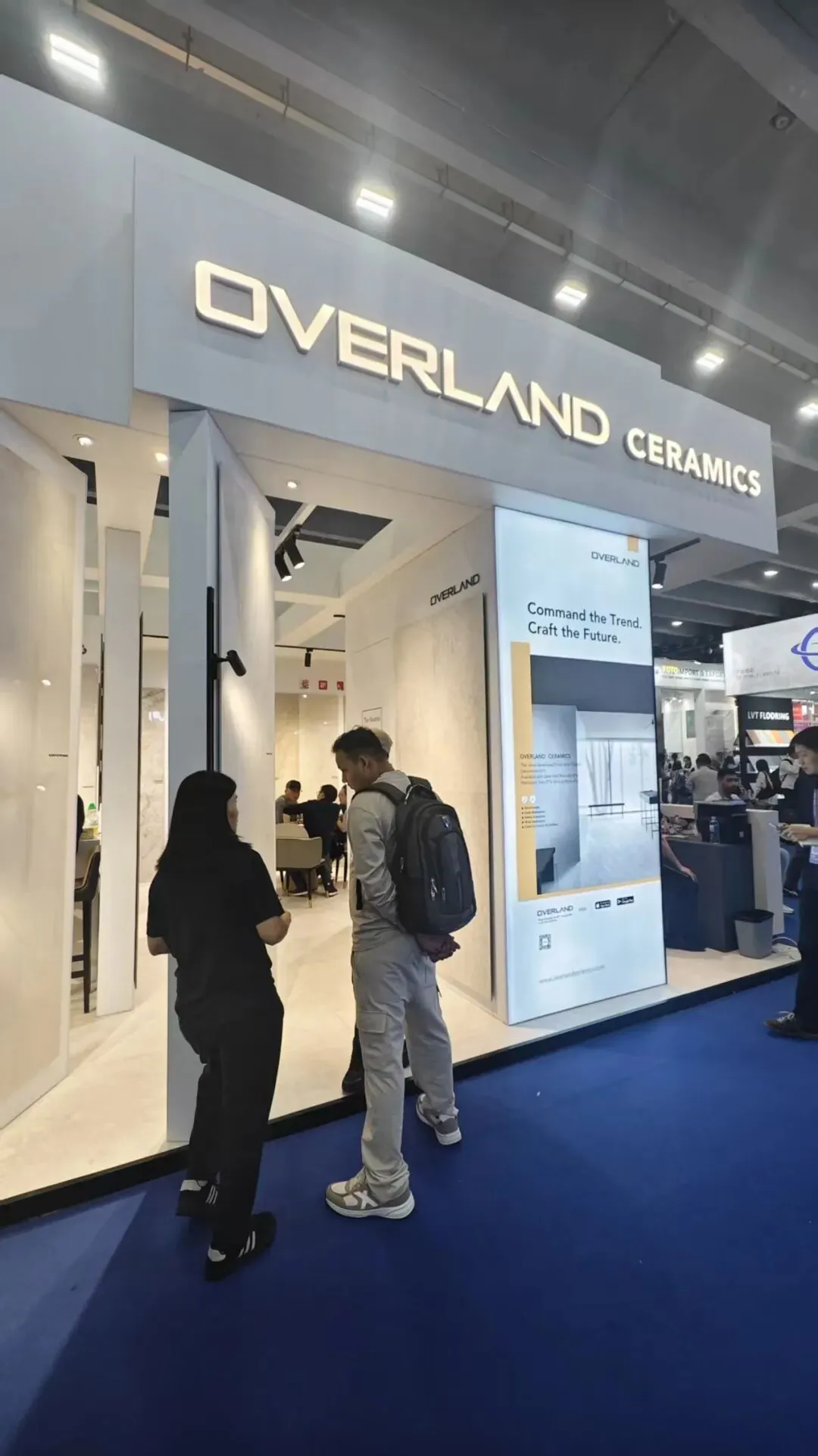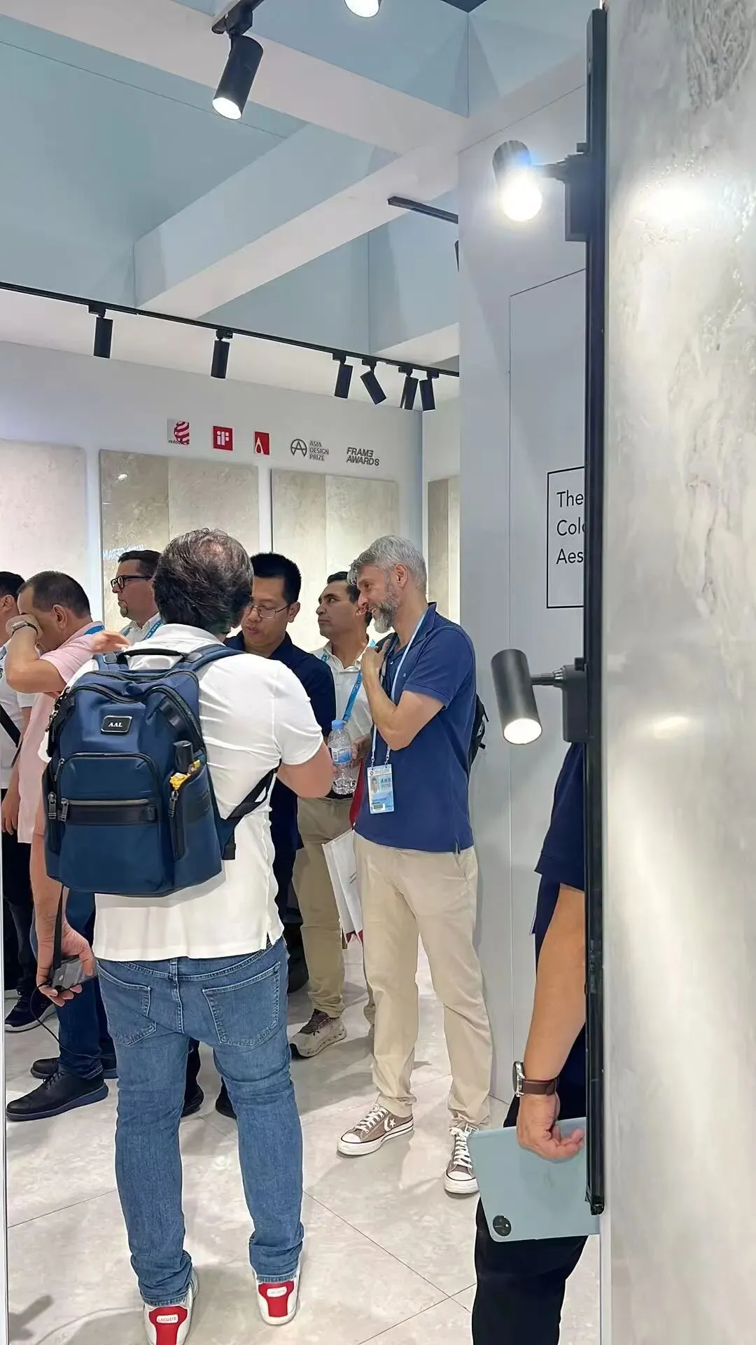 展会首日,欧文莱吸引北美、欧洲、东南亚等多国采购商驻足,素色瓷砖、精品岩板新品获询盘量激增。北美客户盛赞“色彩与工艺细节媲美国际顶级品牌”,欧洲客商则聚焦技术转化的自然呈现。