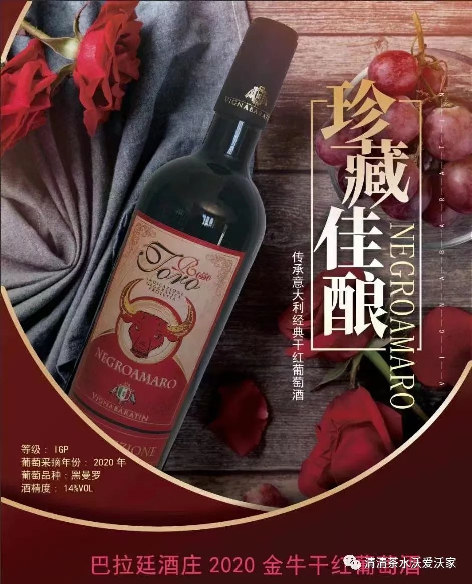 意大利 ( Puglia)普利亚黑曼罗(Negroamaro)“金牛”干红葡萄酒