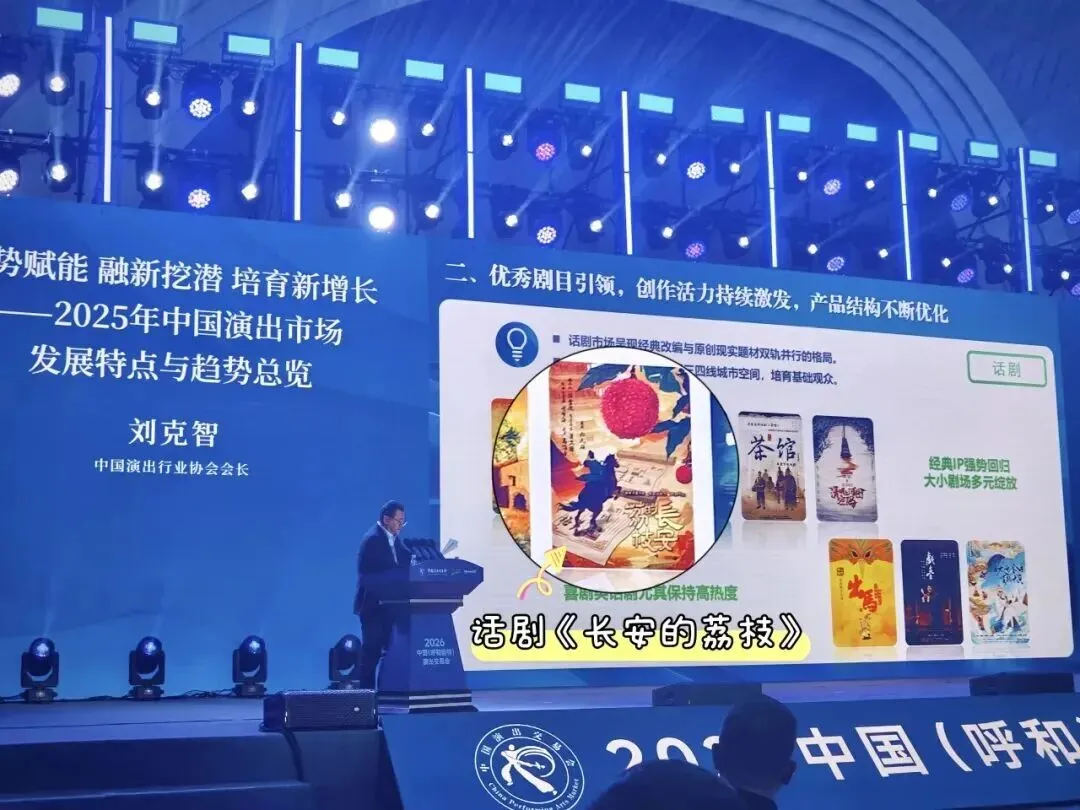 其中,刘克智特别提到,在西安演艺集团·西安话剧院“天下长安”系列话剧《长安的荔枝》等一批优秀剧目引领下,创作活力持续激发,演艺产品结构不断优化。并指出,当下话剧市场正呈现经典改编与原创现实题材双轨并行的鲜明格局。