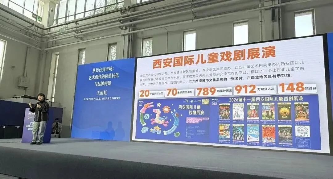 4月22日下午,在2026中国(呼和浩特)演出交易会舞台艺术创作与市场专题论坛上,西安演艺集团艺术总监、西安儿童艺术剧院总经理王丽虹,代表西安演艺集团以《从舞台到市场:艺术创作的价值转化与品牌构建》为题发表主题分享。