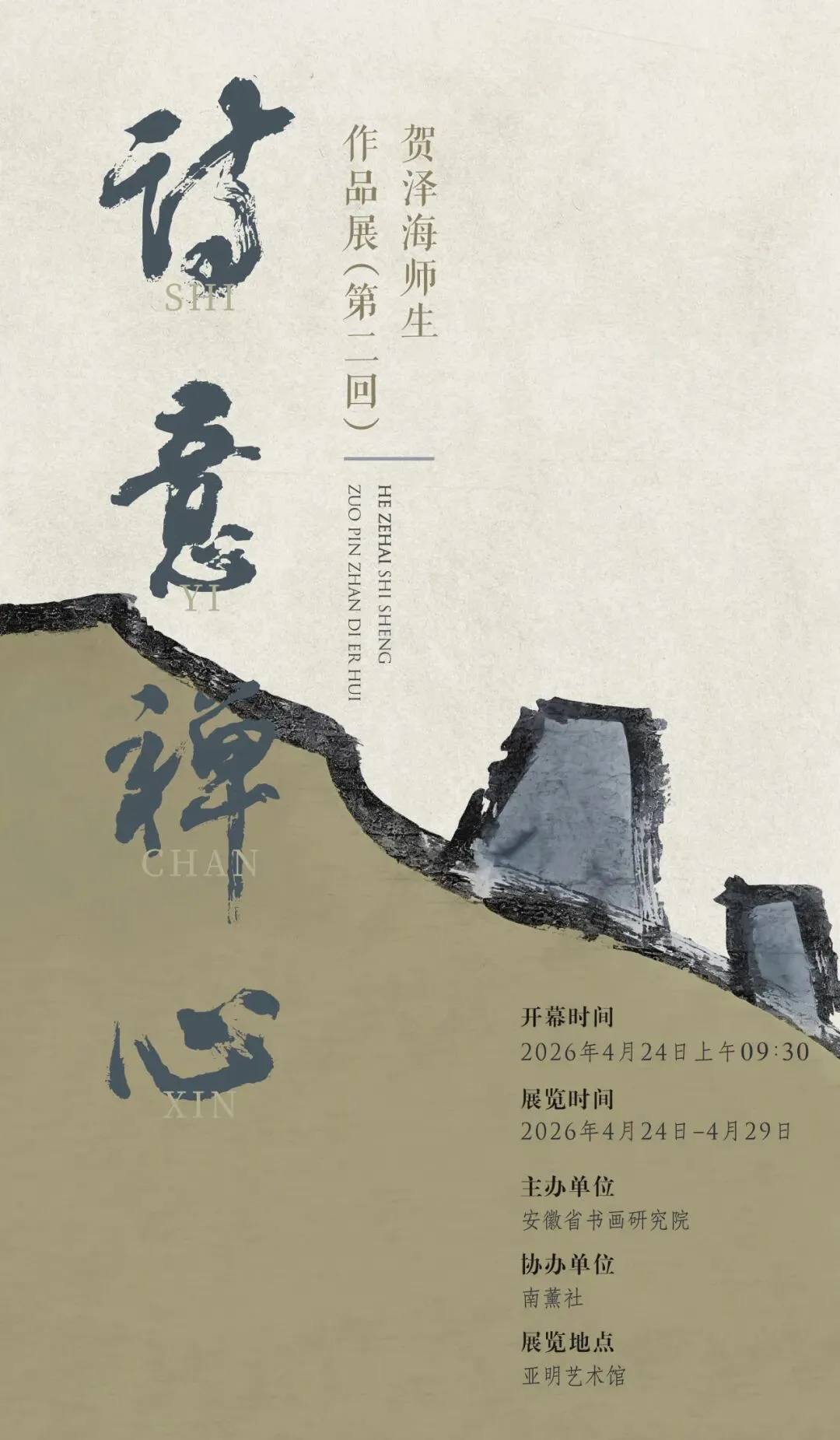 4 月 24 日上午,春光和暖,墨韵流芳。诗意禅心 —— 贺泽海师生作品展(第二回) 在亚明艺术馆隆重开幕。本次展览接续文脉、致敬师恩,集中展现新安画派传承脉络与当代笔墨新貌,为安徽艺坛再添清雅华章。