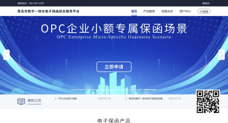 受轻资产运营、单体规模小、传统增信手段匮乏的业态特质影响,OPC企业在传统金融体系中普遍面临资格审核门槛高、申报材料繁琐、保函出函周期长等融资担保堵点。为精准破解OPC企业“融资难、担保繁、流程慢”发展瓶颈,打通普惠金融服务市场末梢的“最后一公里”,青岛数据集团锚定OPC企业核心发展诉求,依托青岛市数字一体化电子保函综合服务平台,正式上线OPC企业小额专属保函服务(https://qdbh.qddataops.com:7443/financeplatform-web/finance/index),以全流程线上化、智能化服务降低企业融资担保成本,为青岛AI-OPC产业生态高质量发展筑牢金融底座、注入澎湃动能。
