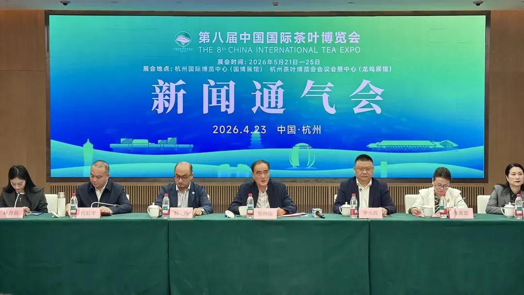 4月23日,第八届中国国际茶叶博览会新闻通气会在杭州召开。本届茶博会延续“茶和世界,共享发展”主题,由中国国际茶文化研究会主办,将于5月21日至25日举行,首创“一展双馆”模式,总展览面积达7.7万平方米。其中,国博展馆(6万平方米)定位为“茶消费盛会”,汇聚近千家优质企业及数十个产区政府展团,设各省品牌茶区及六大茶类、茶器具、国际等综合展区;龙坞展馆(1.7万平方米)定位为“茶创新窗口”,重点展示茶非遗、茶科技、茶文旅等前沿成果。