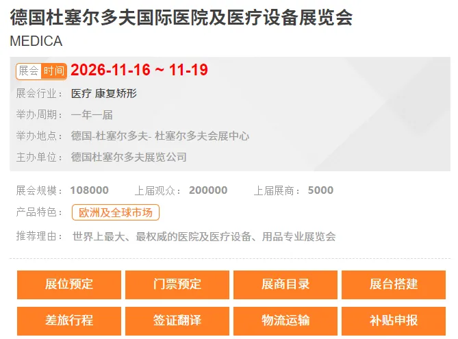 [展位预定、门票预定、展商目录、展台搭建、差旅行程、签证、翻译、物流运输、补贴申报]