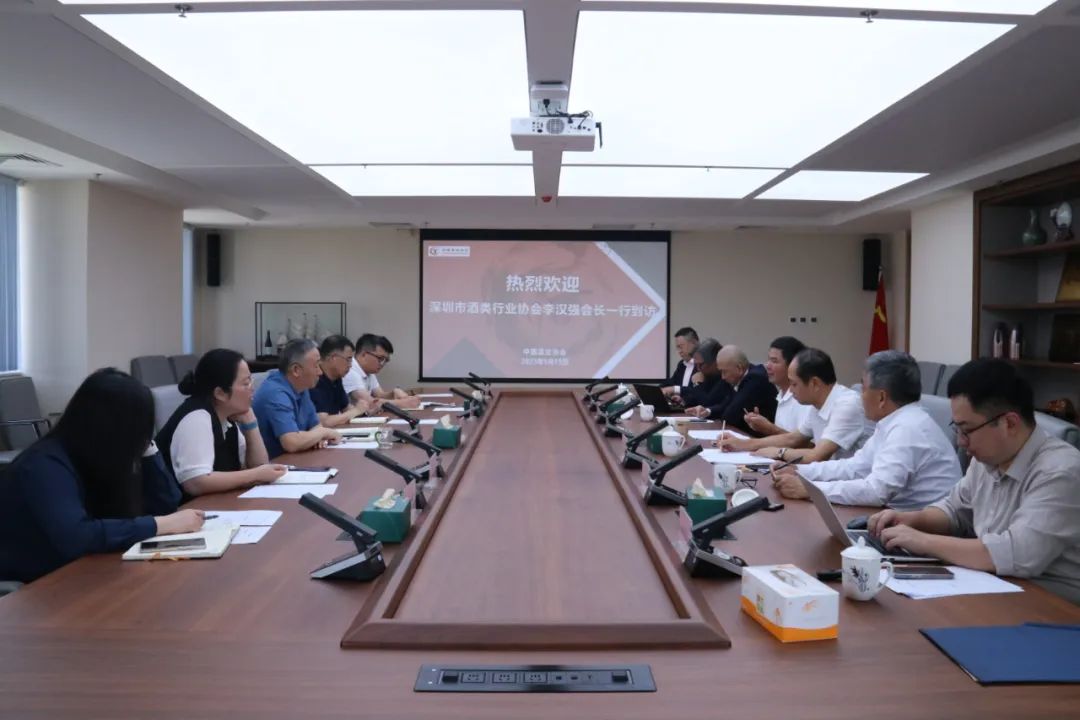 5月15日,宋书玉理事长接待了深圳市酒类行业协会会长李汉强一行,双方进行了座谈交流。中国酒业协会副秘书长刘振国,办公室主任赵婷,名酒收藏委员会秘书长刘海坡,市场专业委员会副秘书长闫一楠,会员部副主任、培训部副主任吴文颖,深圳市酒类行业协会执行会长谢宝,张铁军,秘书长杨克建,副秘书长胡广,孙舜禹,文化顾问李斌等参加座谈。双方围绕深圳市酒类行业协会发展、会展经济、职业技能培训、贸易服务、标准制定、联合工作开展等方面进行了深入交流。谢宝执行会长就深圳市酒业协会发展规划进行交流,张铁军执行会长对培训教育工作进行了介绍,杨克建秘书长对中国国际酒业博览会(深圳)、职业技能培训鉴定、团体标准编制等项目展开说明,孙舜禹副秘书长对贸易服务的相关规划进行介绍。李汉强会长介绍了深圳市酒类行业协会相关工作并表示,一直以来,深圳酒业在发展过程中都将酒类人才教育培训与酒类产品市场推广放在重要战略地位,并希望在相关方面得到中国酒业协会的指导和帮助,同时,针对深圳市酒业发展现状与特点,李汉强会长表示希望在中国酒业协会协调与引领下,形成“政企协”三方合力,共同发展好深圳酒产业,实现产业高质量发展目标。听取相关介绍后,宋书玉理事长首先对李汉强会长一行的到访表示欢迎并指出,在展览展会方面,深圳酒协进行了大量工作,具备较为深厚的建设基础,深圳的独特优势与资源,形成了地方政府和名酒企业高度参与的展会特色,会展同期,将举办多项行业高规格、高水平、高专业的赛事、品鉴、论坛等活动。在展览展会、以赛促培等方面,协会将全力支持深圳市酒业发展。宋书玉理事长强调,作为行业协会,想要持续健康发展,就要从职业化、专业化、制度化、年轻化四个方向构建完备体系。协会非常欢迎深圳市酒业协会在人才培育、专业技能培训、职业技能培训、教材编写等方面积极参与,进一步推广相关工作的市场化常态化,合力推进酒业人才培育。随后,宋书玉理事长针对陈年酒鉴定与贸易服务、联合工作开展、团体标准编制等相关工作提出针对性意见。一直以来,中国酒业协会持续发挥带动和促进作用,为酒类产业高质量发展进行了大量的探索实践工作,形成了较为完备的服务体系,协会始终与各地方酒业协会同频共振,合力推进中国酒业健康发展。本次座谈将进一步促进双方更广范围、更深程度上加强合作。接下来,双方协会也将继续致力于扩大服务范围、提升服务质量,为更好地服务企业、服务产业不懈努力,共同推进酒类产业实现跨越式发展。