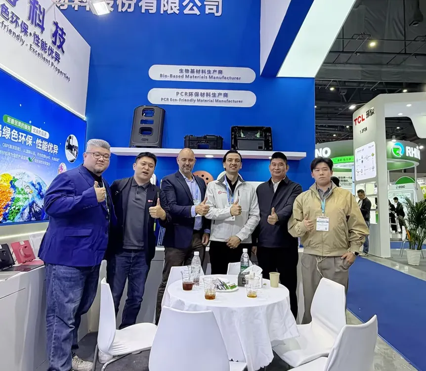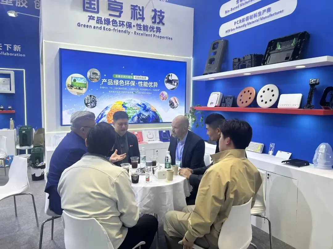 在全球降碳浪潮下,国亨新材料深耕消费后再生塑料领域,以硬核数据重新定义再生材料的环保价值。展会现场,低碳PCR新材料成为当之无愧的“流量担当”——以消费后废旧塑料为原料,碳排放较传统ABS减少77%以上的亮眼数据,让众多寻求碳中和解决方案的品牌客户纷纷驻足,自发测算碳足迹,深度咨询GRS全球回收标准认证及全链路溯源体系。