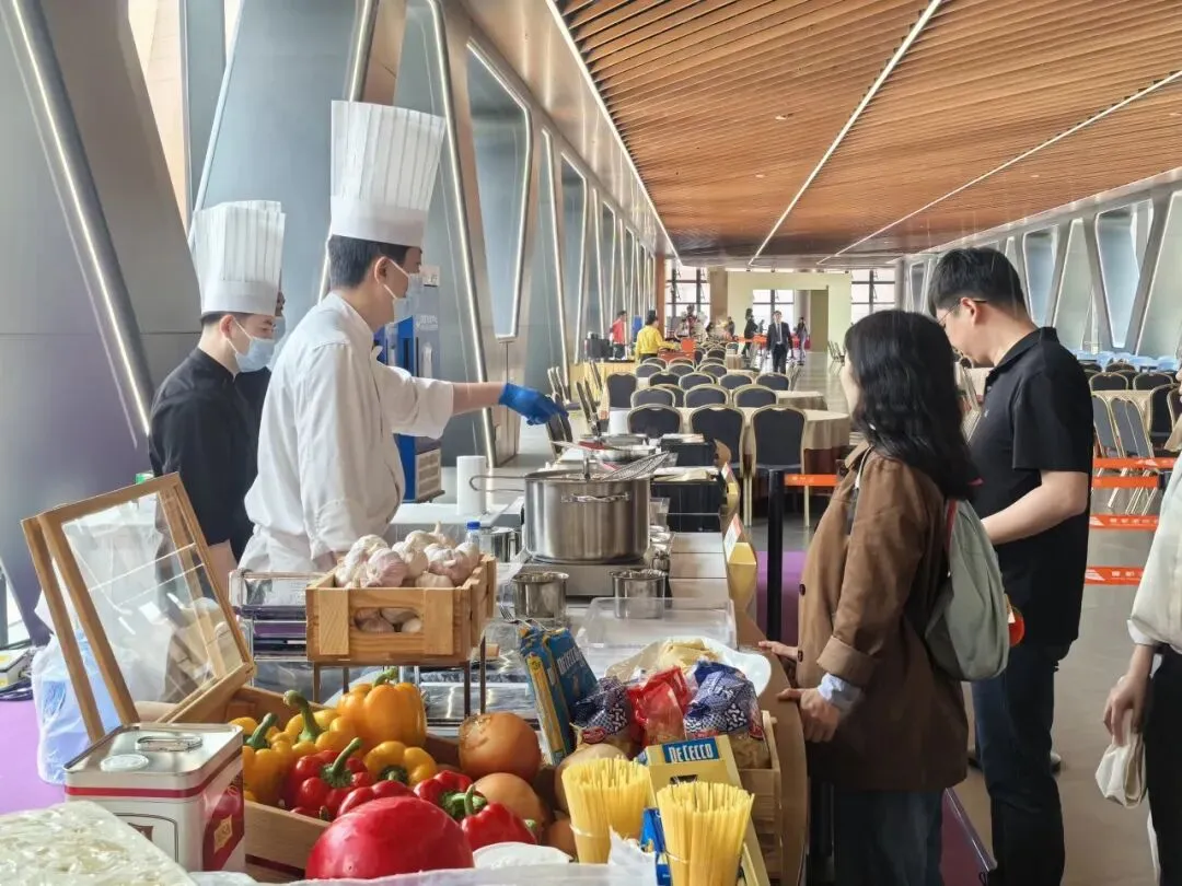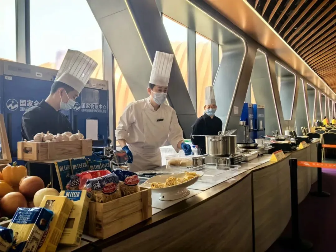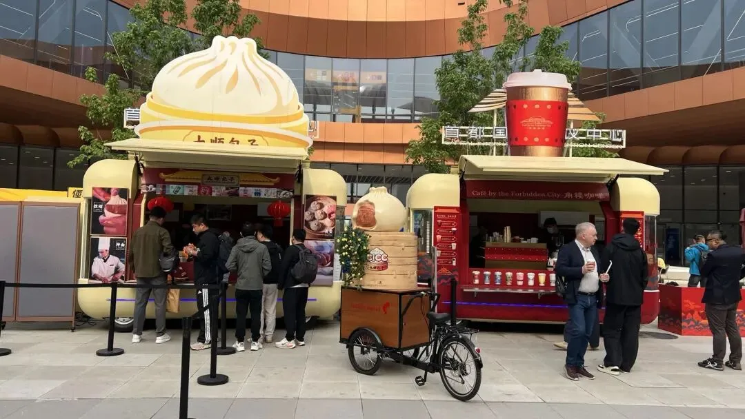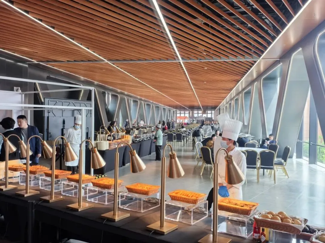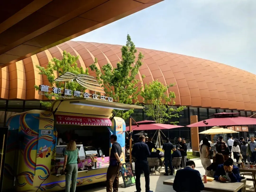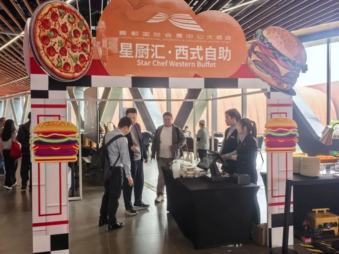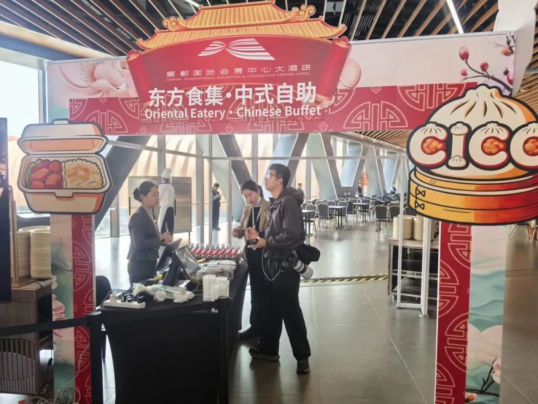 场馆内设3万余平方米餐饮美食区,从“大顺包子+咖啡”这类网红爆款的新奇搭配,到精致特色简餐、西式轻食,再到丰盛考究的中西式自助,全方位覆盖中西美食与南北风味。该区域单日最大供餐能力超5万份,可提供用餐座位6000余个;同时引入智能咖啡机器人、数字化点餐系统等科技应用,实现从“吃得饱”到“吃得好、订得快”的智能化升级。场馆中央庭院以园林式景观营造轻松惬意氛围,融合绿意、步行空间与休憩功能,搭配各具特色的快闪餐车,将网红潮流与星级品质完美结合,为参展客商带来愉悦的消费体验。此外,配套的首都国际会展中心大酒店提供410间客房、9种房型及健身、泳池等设施;场馆拥有38个不同规模厅室,配备新车全球首发厅与智能科技体验区,可一站式满足会议、论坛、商务洽谈需求,全方位彰显“北京服务”金名片的品质。