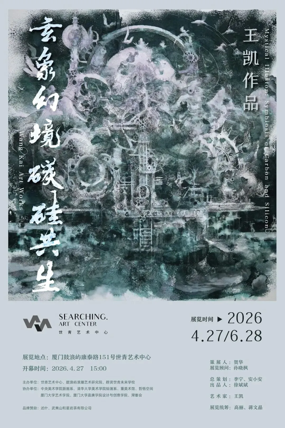 Searching Art Center is honored to announce that it will launch an exhibition by artist Wang Kai titled "Mystical Illusion: Symbiosis of Carbon and Silicon" on April 27, 2026. The exhibition is curated by He Hua and will last until June 28. Everyone is welcome to visit.