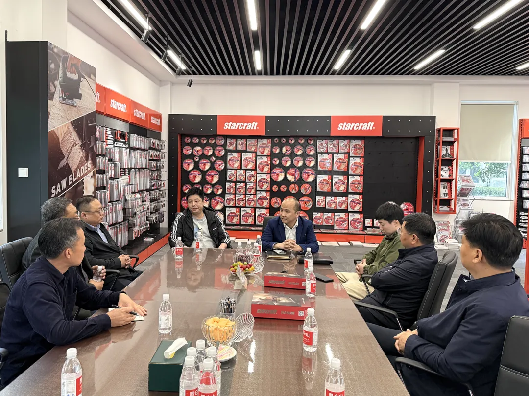 作为一家深耕外贸市场多年的优秀企业,上海恒辉在国际市场上表现亮眼。交流中,阮总向调研组详细介绍了公司的发展概况。恒辉自有品牌“starcraft”旗下产品线极为丰富,涵盖各类电动工具附件、木工与金属锯片、多材质开孔器、金刚石锯片、切割片和百叶片、砂带、带柄页轮等各类抛磨耗材众多领域。凭借过硬的品质与完善的供应链,公司长期为米沃奇、牧田、百得等国际知名电动工具品牌提供优质配套服务,展现出强大的出海竞争力。