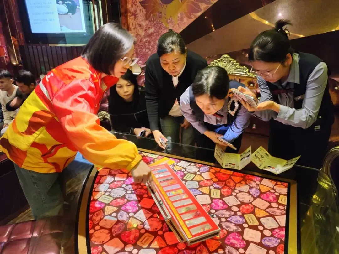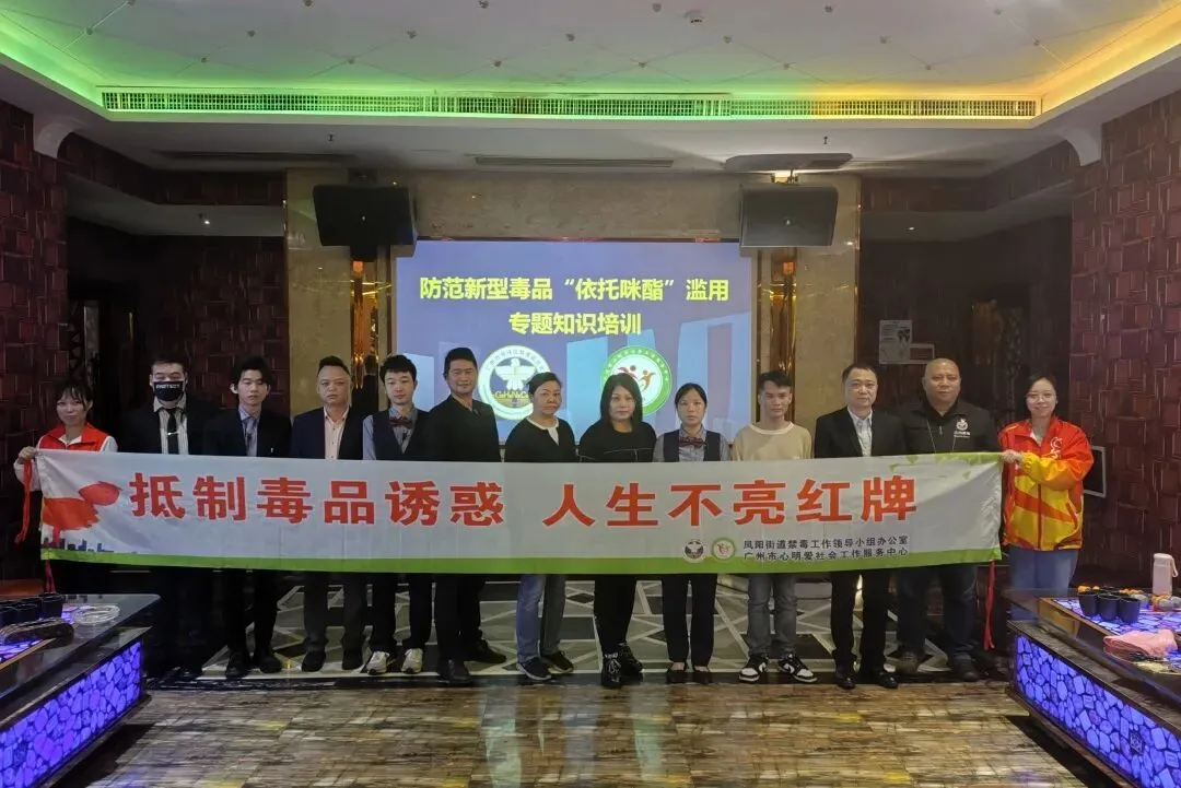 为全力护航第139届广交会顺利举办,切实强化辖区重点场所禁毒管理,提升从业人员防毒拒毒能力,营造安全、有序的社会环境,持续巩固全国禁毒示范城市创建成果工作,2026年4月24日,凤阳街道办事处联合广州市心明爱社会工作服务中心“启帆之家”海珠区禁毒社工服务项目,深入辖区KTV等重点娱乐经营场所,组织开展专项禁毒知识宣讲与教育培训工作。