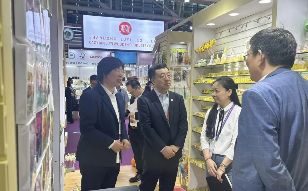 开展首日,苏豪控股集团副总裁、党委委员李明到展调研,详细了解布展细节、新品亮点及客户洽谈进展。结合当前外贸新形式与行业新趋势,他强调,参展团队要聚焦产品核心竞争力,加快创新成果转化,以更加积极、主动的姿态拓市场、抢订单,全力助推集团外贸业务提质增效、稳健发展。