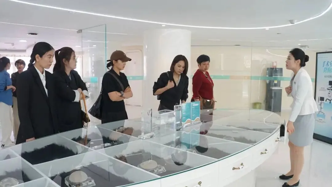 在河南整形美容医院,王咏梅一行实地参观了聂院长艺术画廊、假体博物馆、美容抗衰中心、脂肪实验室、VIP会员中心及整形修复外科等特色展区与临床科室。院方负责人详细讲解了医院的发展历程、学术成果及前沿医疗技术的临床应用,引发会员代表的浓厚兴趣。大家纷纷就行业趋势、精细化管理与服务升级等话题深入请教,交流氛围积极活跃。