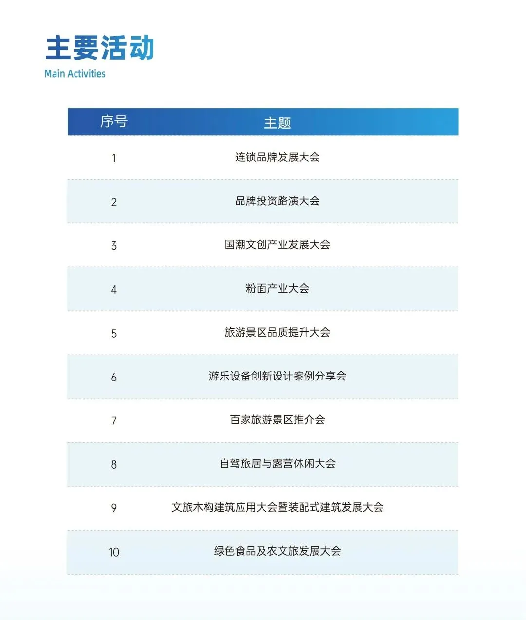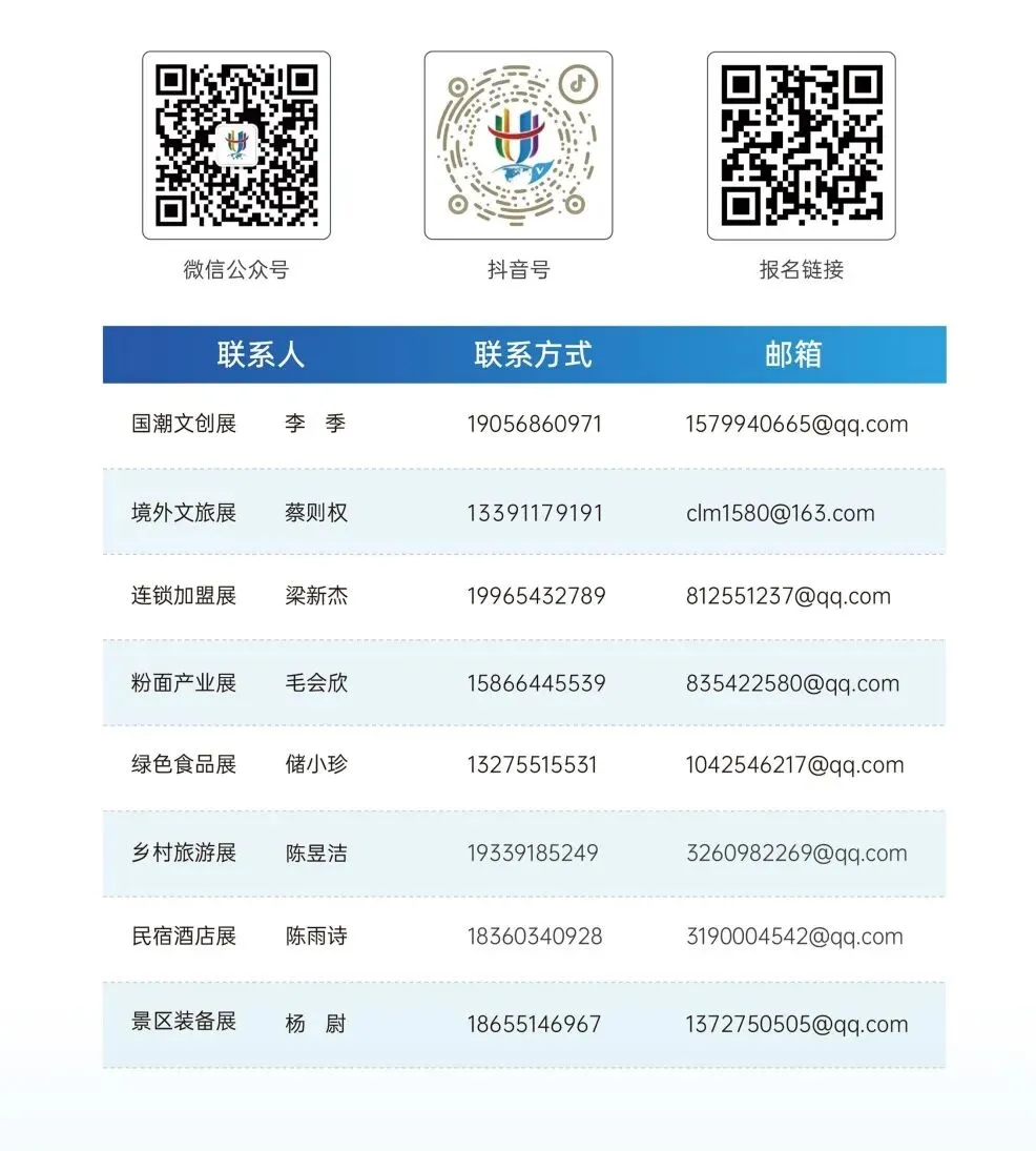连锁加盟、粉面产业、绿色食品、境外文旅、国潮文创、潮玩礼品、民宿酒店、乡村旅游、景区装备。