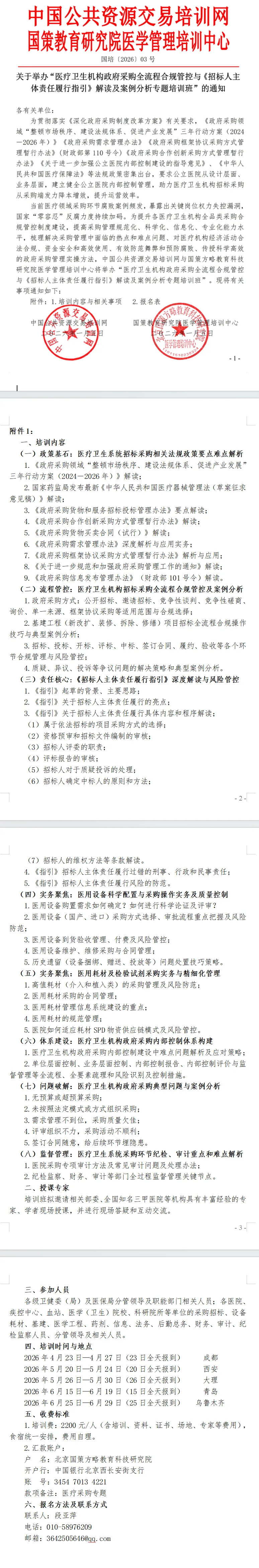 “医疗卫生机构政府采购全流程合规管控与《招标人主体责任履行指引》解读及案例分析专题培训班”的通知