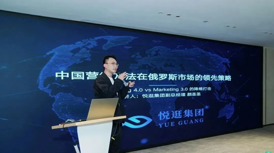 悦逛集团副总经理颜圣圣率先登台,以"中国营销方法在俄罗斯市场的领先策略"为主题,从选品策略、AI在电商中的应用、营销渠道、本地化运营等角度,系统拆解了适合中国企业的俄罗斯市场打法。