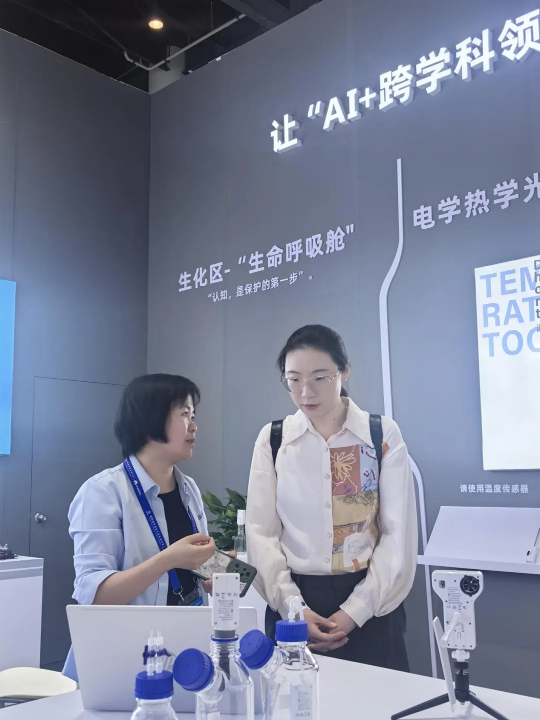 现场工作人员围绕新课标改革要点,实景演示AI 智能实验设备操作、跨学科项目式教学流程,深度分享科学实验室建设、跨学科课程搭建为各校智慧科学教室升级、特色课程建设提供专业参考。