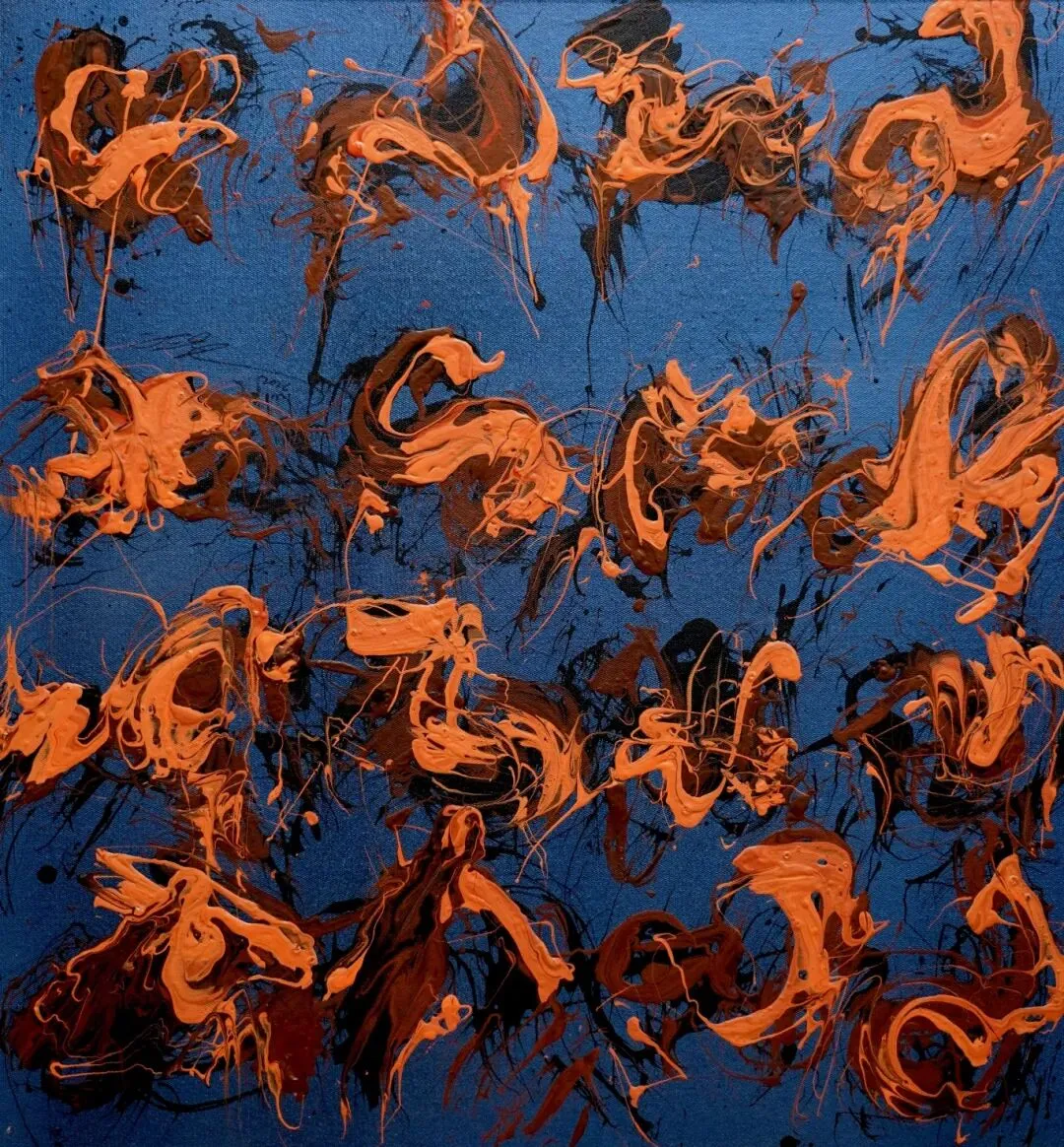 邓宇的艺术实践,最动人之处在于其创作过程的现场感与率真性,这使其作品超越了静态的图像本身,成为一场流动的、具身的精神仪式。邓宇常常用亲手改制的“竹笔”作为行为工具——这是一场充满张力的肢体与颜料的共舞——一气呵成的笔触极具爆发力,颜料的挥洒与流淌充满了不可预测的偶然性。这种创作方式自带一种原始而野性的能量,让观者在未看到创作最终面貌时,便能在过程中直观感受到生命意志的奔涌。