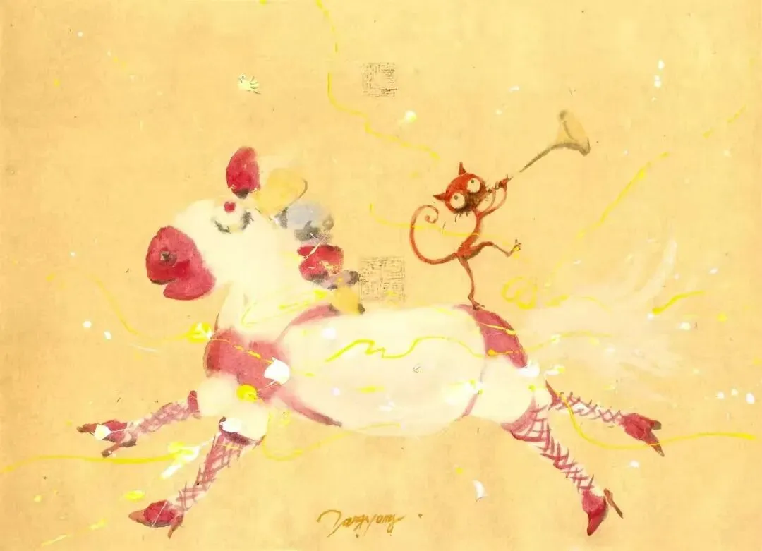 Beyond the frequent appearance of horse imagery or elements, the exhibition also reveals their sincere expressions and spiritual breakthroughs. This new exhibition marks WAS Art Center's second collaboration with artist Zeng Yong during the lunar new year premiere, following a one-year interval. Compared to his previous works, Zeng Yong now presents his latest series, Art Horse, in which he entirely parodies, deconstructs, and subverts classics through the horse. In this series, Zeng Yong boldly overturns classical artistic paradigms, replacing the central figures in iconic paintings with horses, making the horse the absolute protagonist of the picture. Paired with witty, lively expressions and a playful, childlike charm, he dissolves the solemnity and grandeur traditionally associated with horse-themed paintings. Shedding the constraints of grand narratives, he adopts a light, gentle, and healing approach that strikes directly at the heart. In this series, Zeng Yong continues to use traditional Chinese Xuan paper, a material he knows intimately, as the foundation of his mixed-media creations. Together with unpretentious brushwork and soft color washes, he restores art's most authentic healing power.