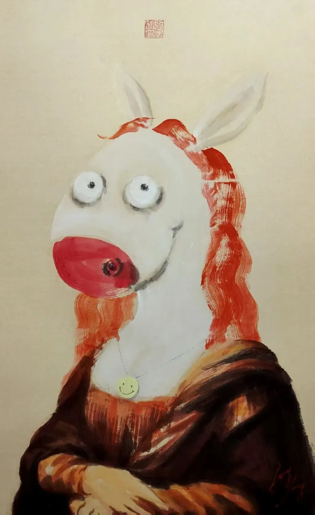 本次展览中除了大量出现“马”的意象或元素外,还有来自他们的率真表达与精神突围。此次新展是WAS艺术中心与艺术家曾勇时隔一年,依然在农历新年首展再度与其合作。对比之前的作品,这次曾勇携最新系列作品“艺术之马”全然以“马”戏仿经典、解构经典、颠覆经典。在系列创作中,曾勇大胆颠覆经典艺术范式,将经典画作中的核心人物替换为马的形象,让马成为画面的绝对主角。搭配诙谐灵动的表情、童趣盎然的气质,消解了传统马题材绘画的厚重与庄严,褪去宏大叙事的束缚,转而以轻盈、温柔、治愈的姿态,直击内心。系列中,曾勇依然选择熟知的中国传统宣纸作为综合创作的本源,配合质朴的笔墨、柔和的色彩晕染,还原艺术最本真的治愈力量。
