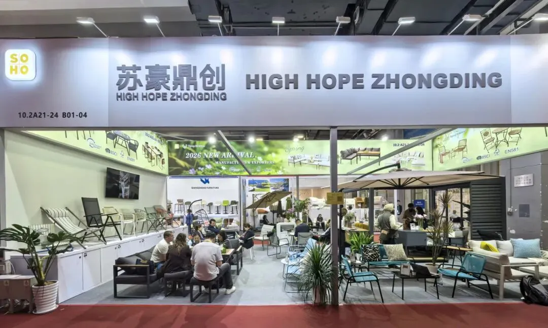 针对春季采购特点及近期原材料价格上涨、国际运力波动等现实挑战,苏豪鼎创在家具展位做了两件事:一是“加法”——重点升级经济款与市场热销款,新增功能配置、优化外观造型、丰富色彩选项,同时开放个性化定制;二是“减法”——适度收缩高端铝制组合套系占比;这一组合策略在控制产品成本的同时,保持了视觉吸引力和使用体验。
