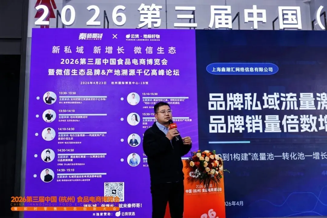 昨日,杭州国际博览中心人声鼎沸、人气爆棚——由秦师哥私域联盟与中食e展联合主办的“2026第三届中国食品电商博览会暨微信生态品牌&产地溯源千亿高峰论坛”盛大启幕!行业精英齐聚一堂,共赴这场私域行业的巅峰之约,解锁全域新增长秘籍。