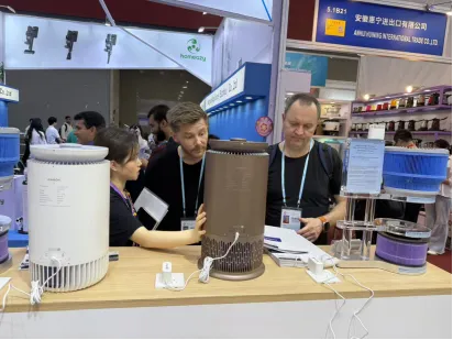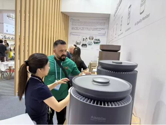 尤为引人注目的是,中邦电器此次并非简单地展示单品,而是带来了完整的业务、技术及方案支持团队,重点展示其“空气健康场景化解决方案”。从家庭到商用,从单一功能到系统化支持,中邦正以其强大的研发与模具制造实力,为不同场景提供定制化的空气健康结果。这一“技术+方案”的创新模式,吸引了来自欧美、东南亚、中东等多个国家和地区的采购商驻足洽谈,成为展区内一道亮丽的风景线。