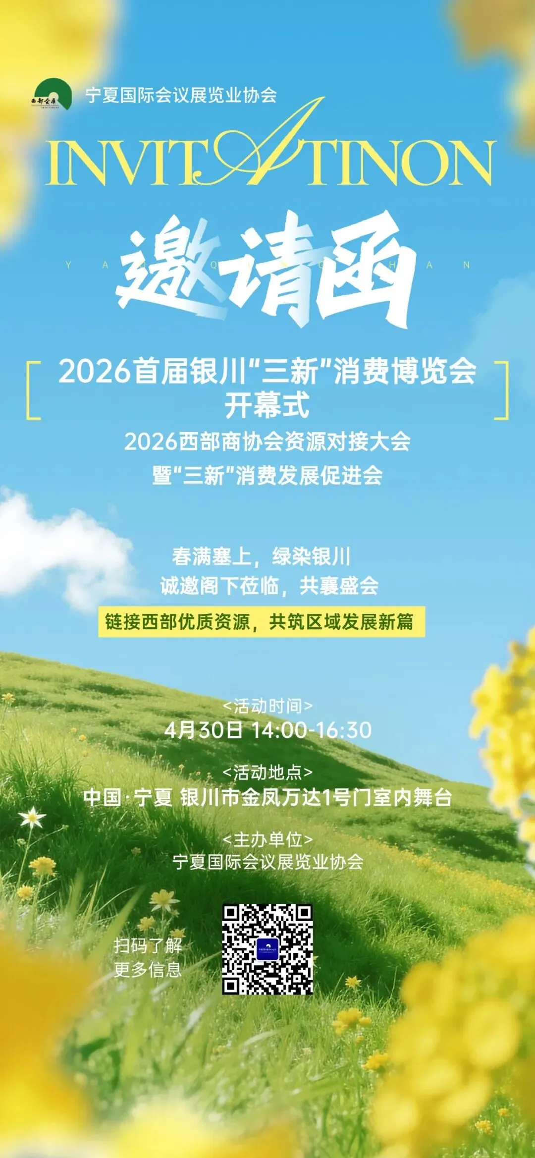值此盛会开幕之际,作为本届博览会的重要开幕同期活动,2026西部商协会资源对接合作大会暨“三新”消费发展促进会将于 4月30日下午14:00-16:30在银川市金凤万达1号门室内舞台隆重举办。我们诚挚邀请西部各省区的商协会代表、优秀企业家及业界精英共聚银川,共襄盛举,共谋发展。
