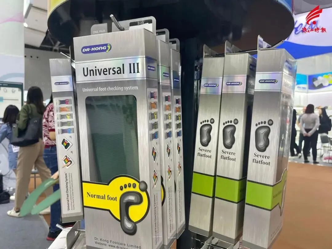在广东足迹鞋业有限公司的展位,不少外国客商前来咨询。 开展首日,南海鞋业不少参展企业实现“开门红”,已收获多张专业买家名片。在广东足迹鞋业有限公司的展位,不少外国客商前来咨询,试用3D验脚仪。 “我们这款功能鞋垫由PU物料制成,有轻身、耐用及良好吸震功能,并有不同幅度足弓承托,适合不同脚形,轻微足底痛人士同样适用。” 足迹鞋业相关负责人介绍,开展首日上午,公司展位已接待来自世界各地客商超30人,以来自哈萨克斯坦等共建“一带一路”国家客商居多,功能鞋垫、各式运动鞋等产品较为受欢迎。