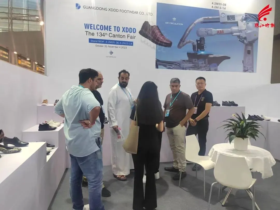 广东辛迪丹顿鞋业有限公司迎来一批采购商。 除了长期合作的老客户,更让赵登平欣喜的是本届广交会上来自新兴市场客户的增多,“这次展会带来了很多‘一带一路’共建国家的采购商,有来自以色列的客户反馈后续到公司厂区参观并详谈。”