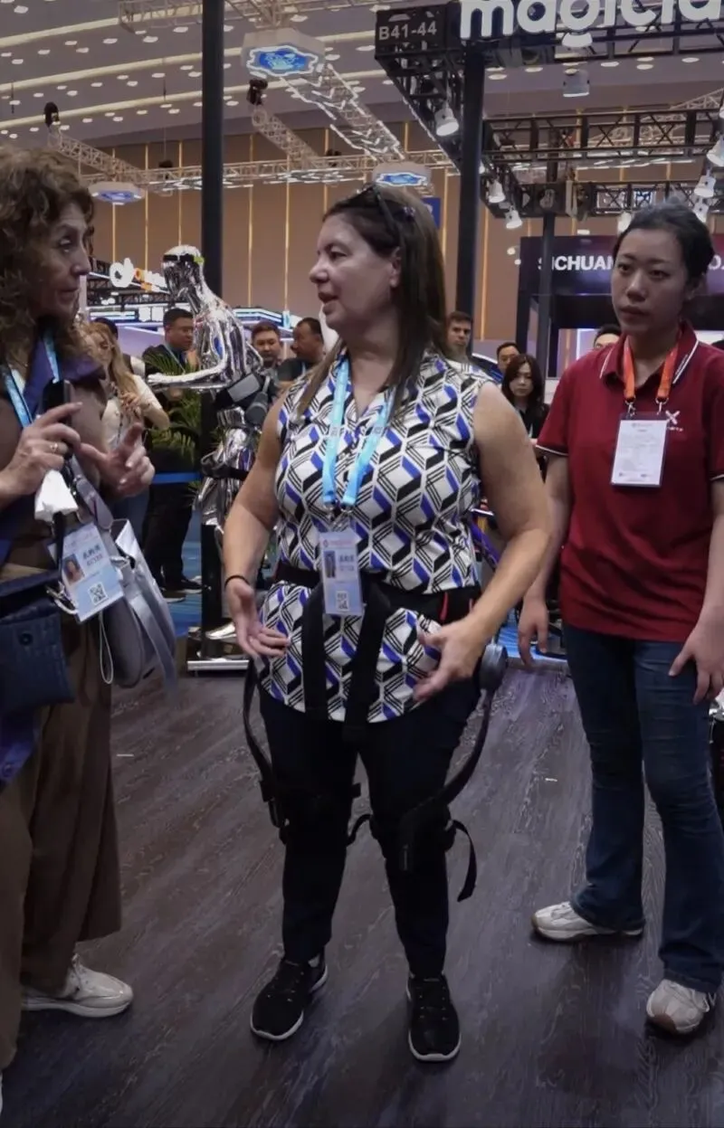Maria在广交会现场体验外骨骼设备。受访者供图